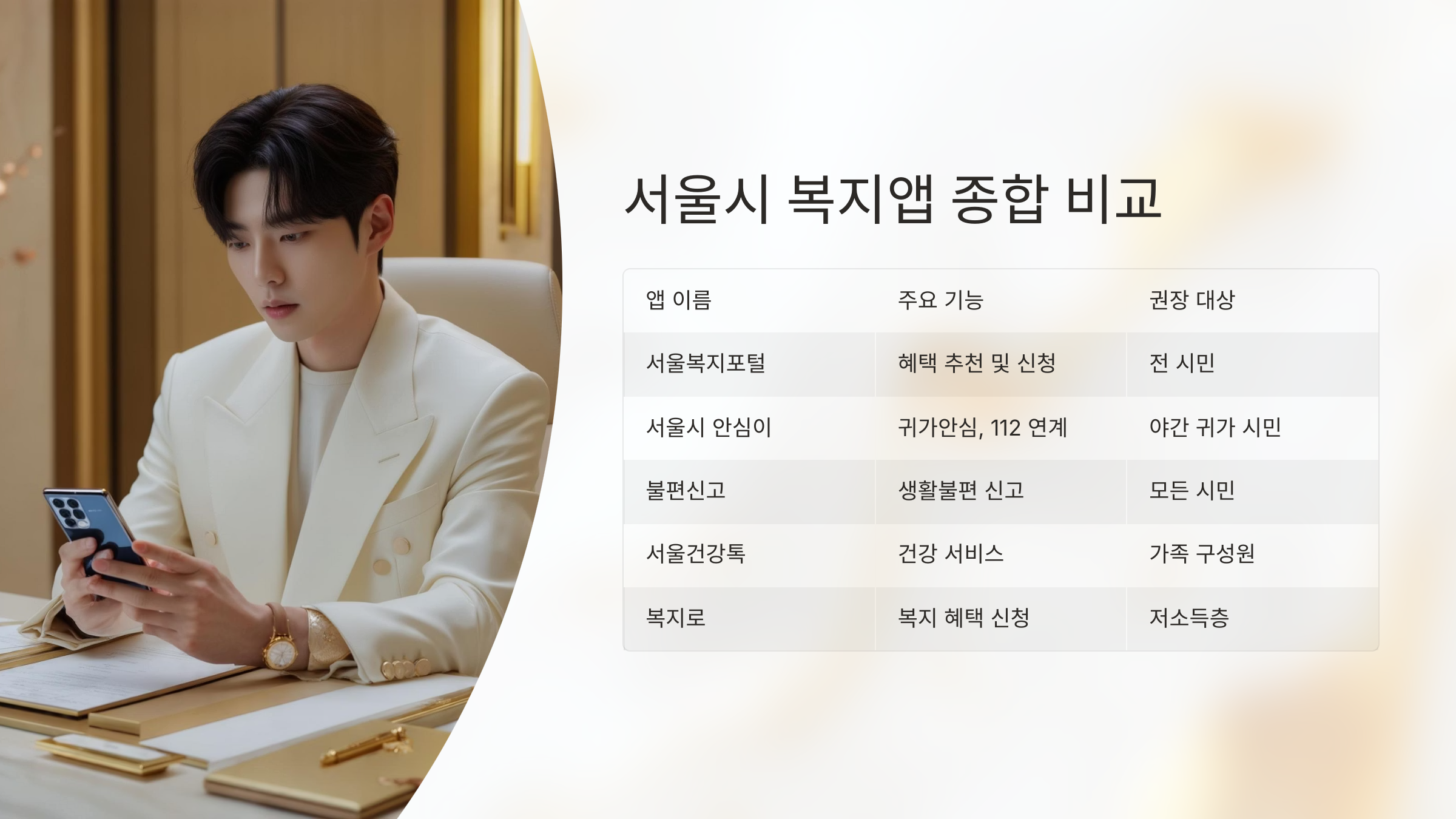 서울시 복지앱 종합 비교 표