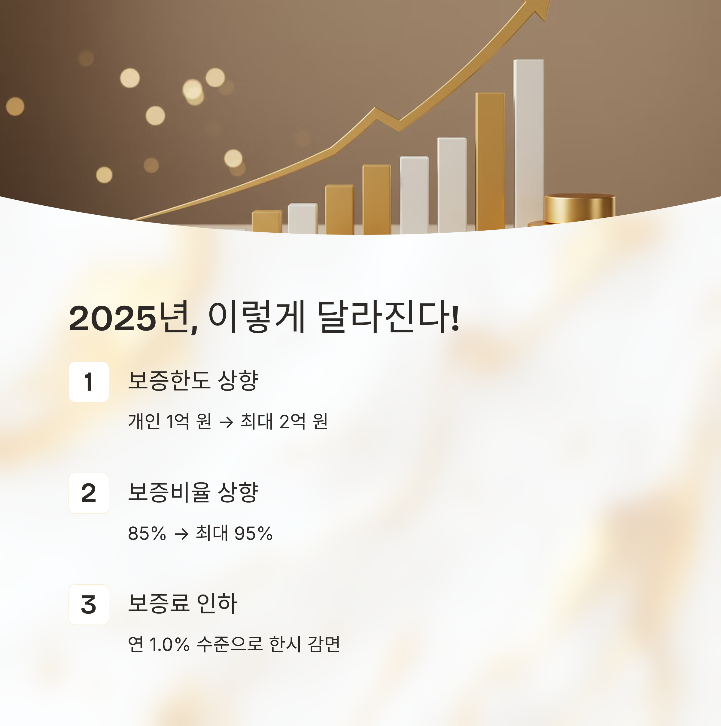 - 보증한도 상향: 개인 1억 원 → 최대 2억 원까지 확대
