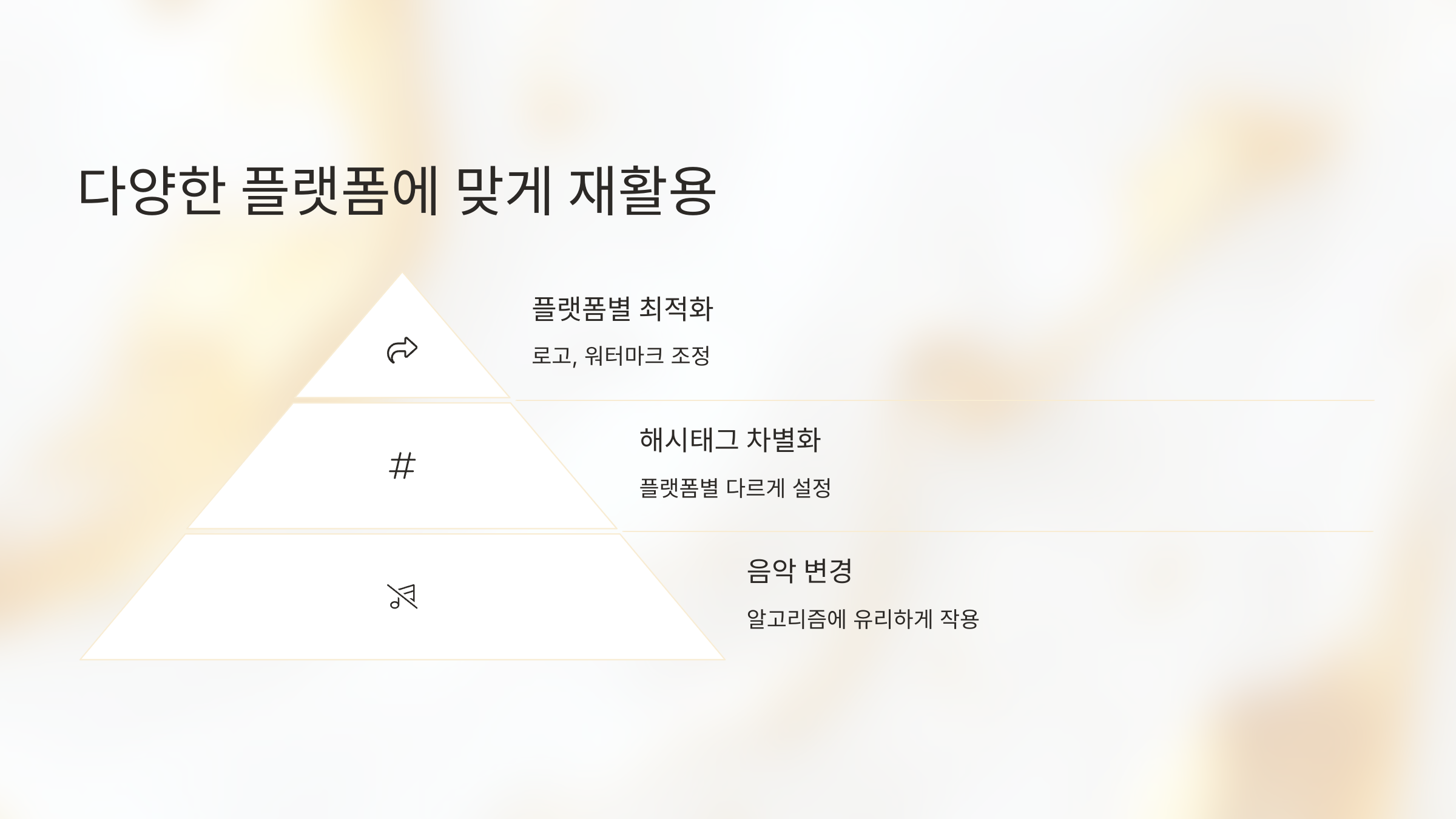 재활용할 때는 각 플랫폼 해시태그와 음악을 다르게 설정하는 것이