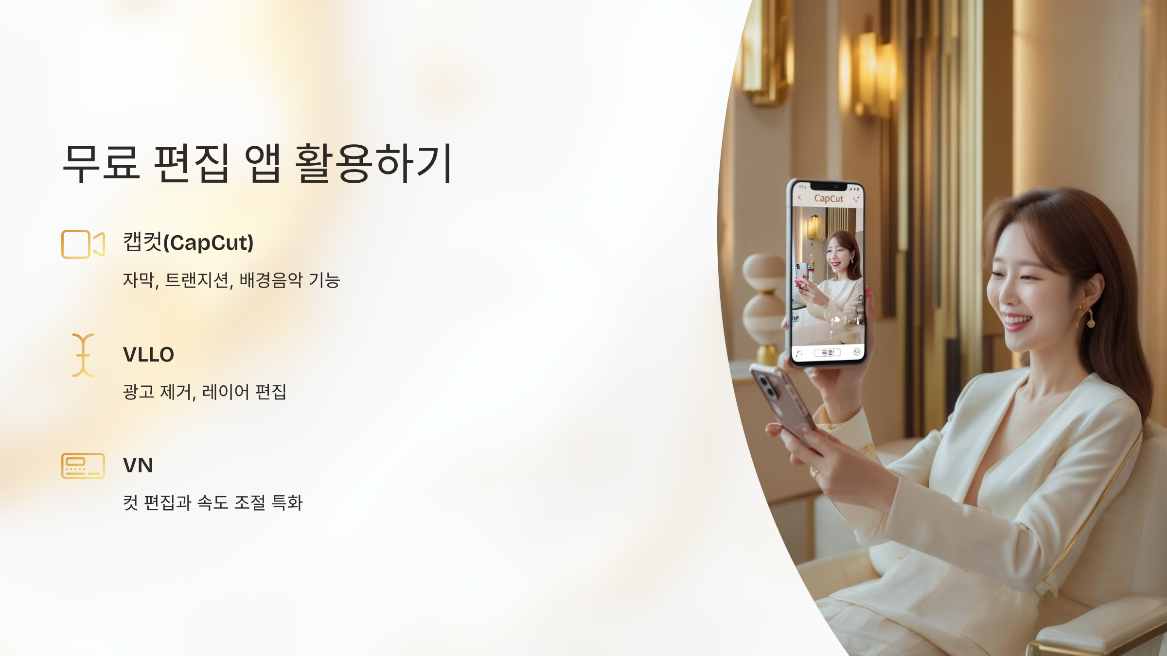 - VLLO: 광고 제거, 레이어 편집 등 초보자 친화적 기능