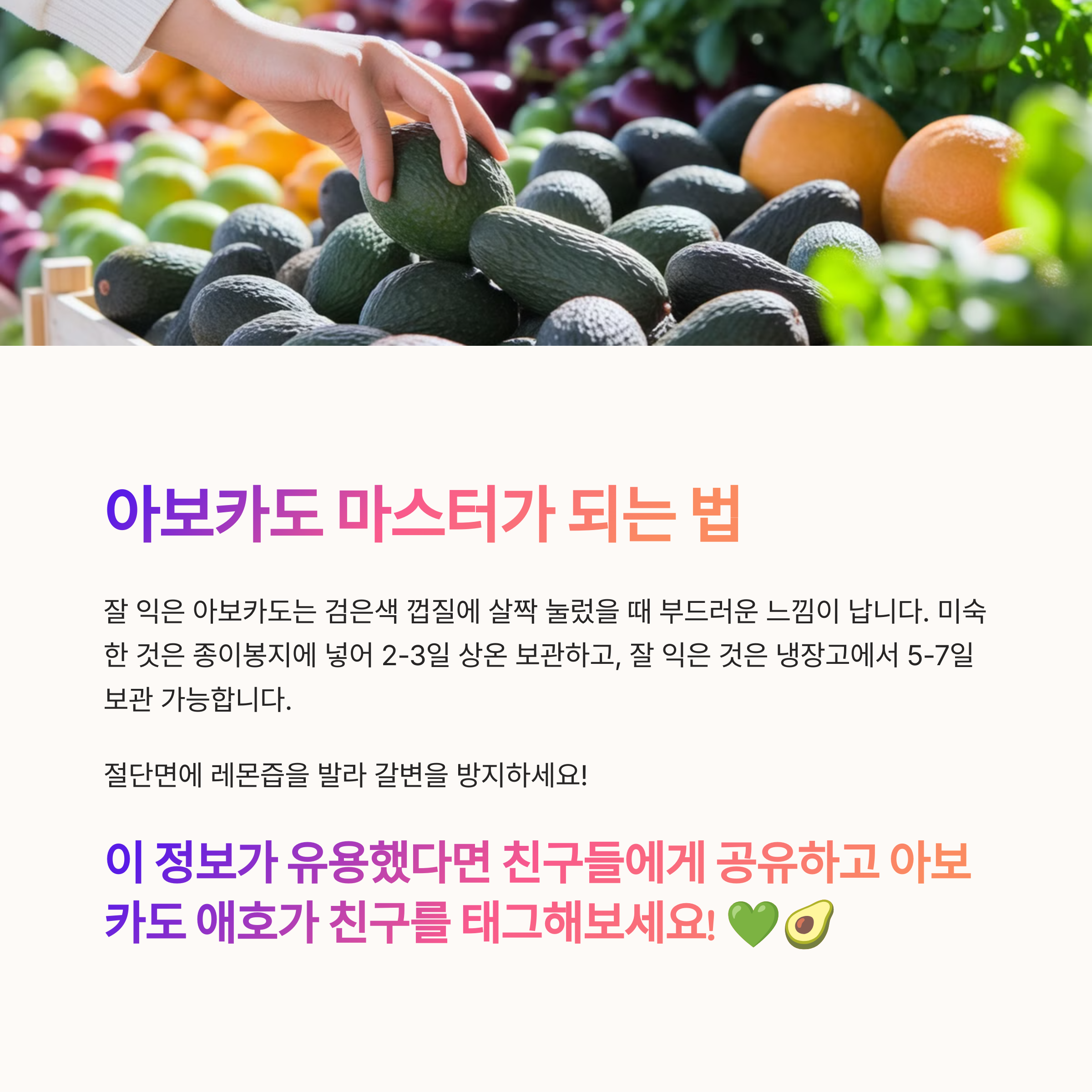 아보카도를 어떤 방식으로 즐기고 계신가요? 혹은 궁금한 점이 있으시다면 댓글로 남겨주세요. 여러분의 경험과 팁이 다른 독자들에게 큰 도움이 됩니다!
