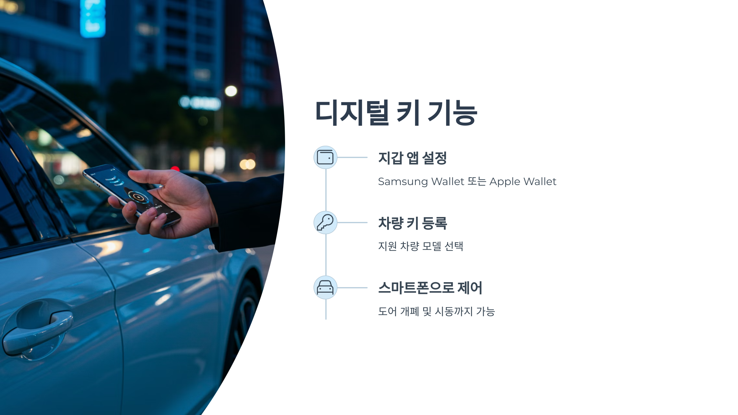 스마트폰을 디지털 키로 사용할 수 있는 기능을 탑재하고 있습니다.
