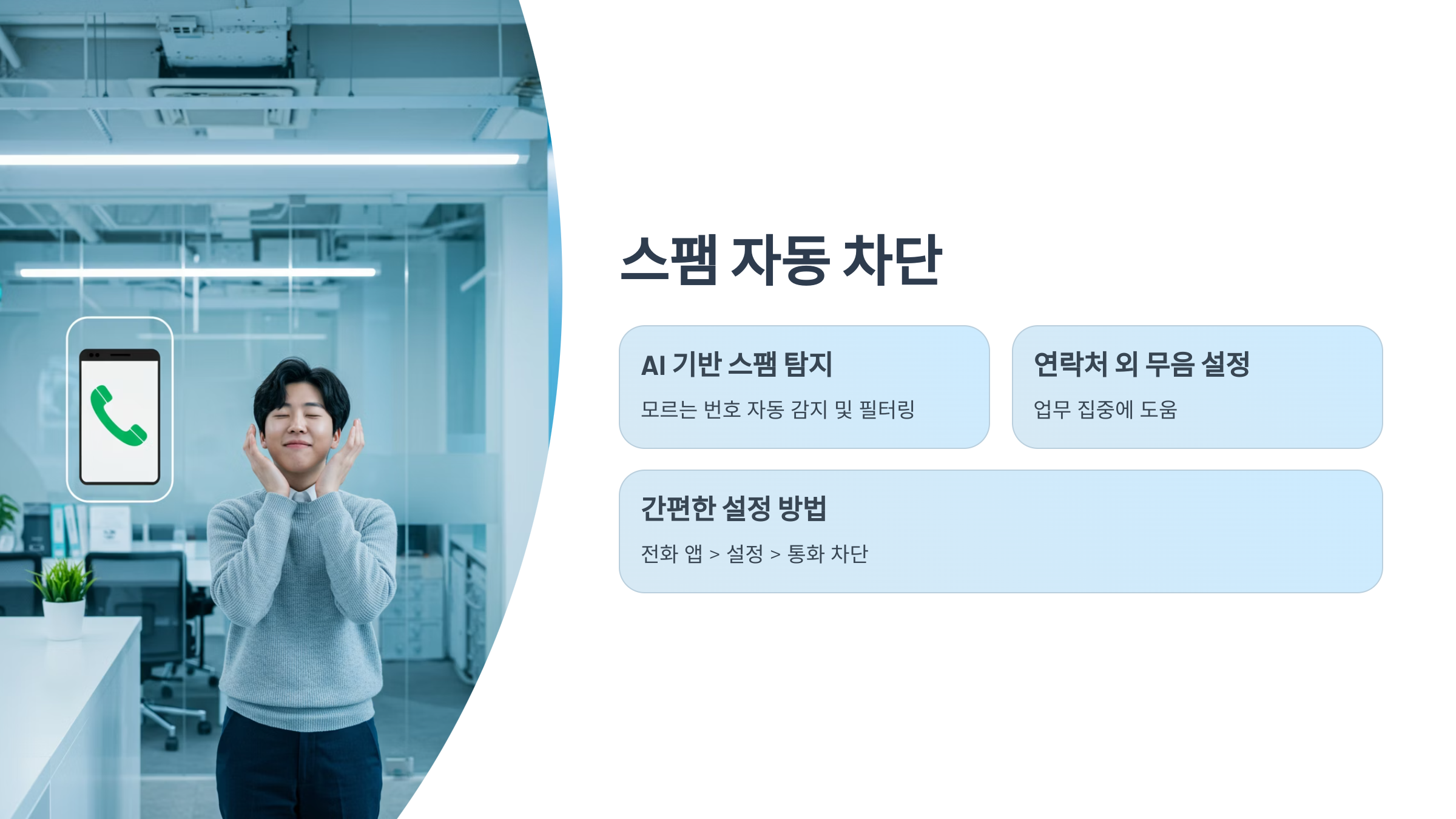 특히 연락처에 없는 번호는 무음으로 설정할 수 있어 업무 집중에도 큰 도움이 됩니다.