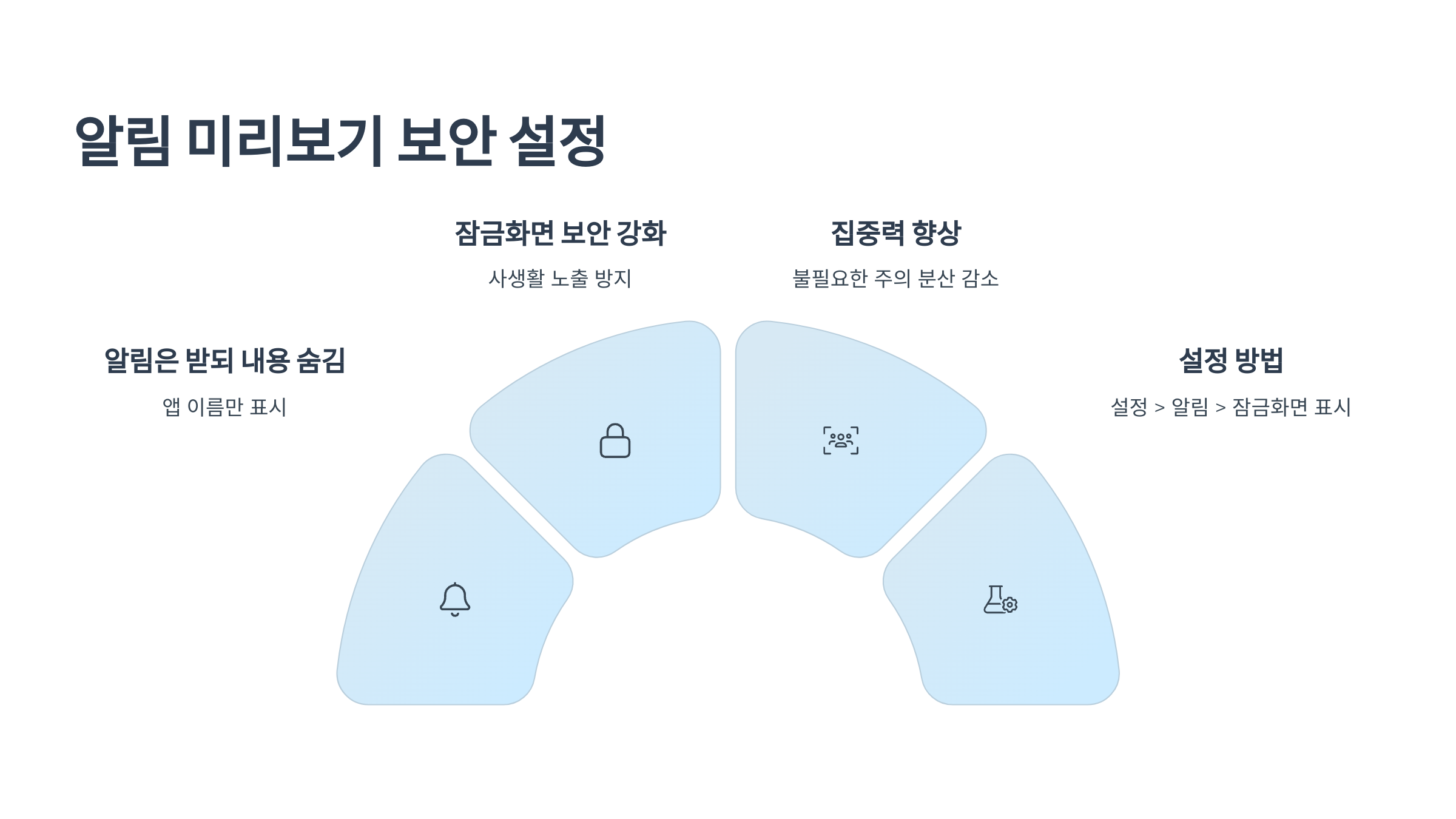 내용 없이 알림만 뜨도록 설정이 가능하며, 보안성과 집중력을 동시에 높일 수 있습니다.