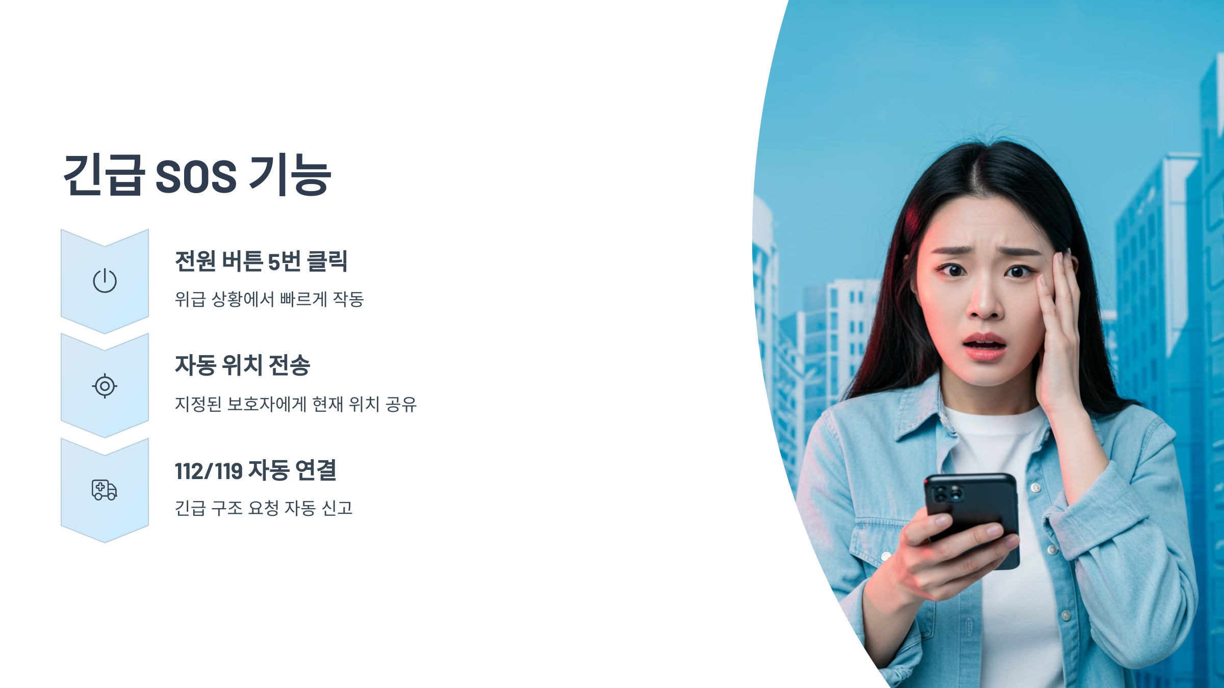 1. 긴급 상황 시 전원버튼 5번 클릭: SOS 자동 신고