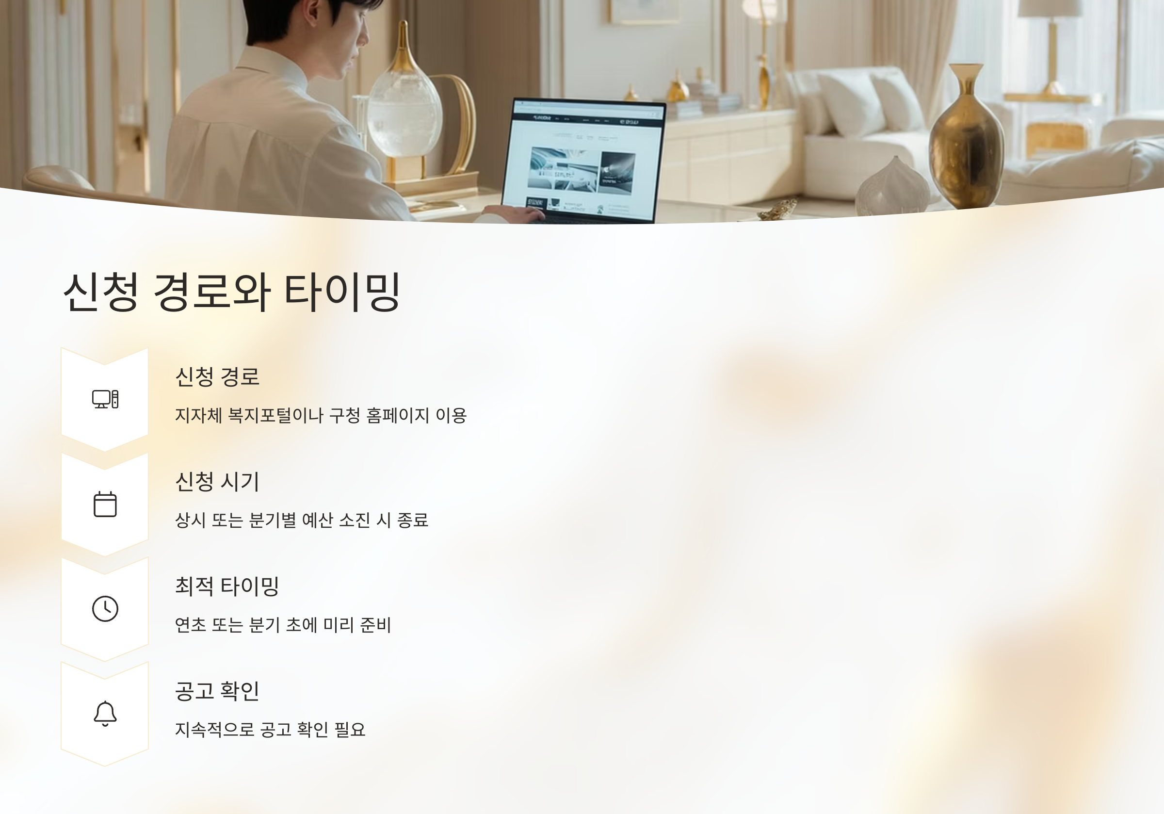 신청 가능한 시기는 상시인 경우도 있고, 분기별 예산 소진 시 종료되기도 합니다
