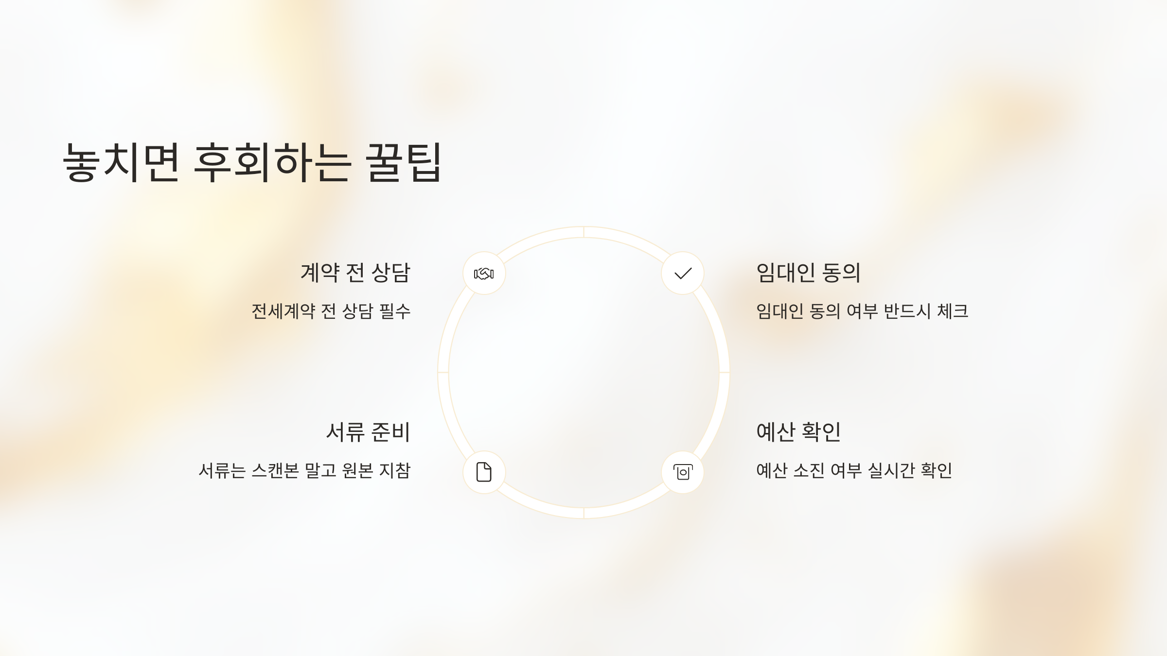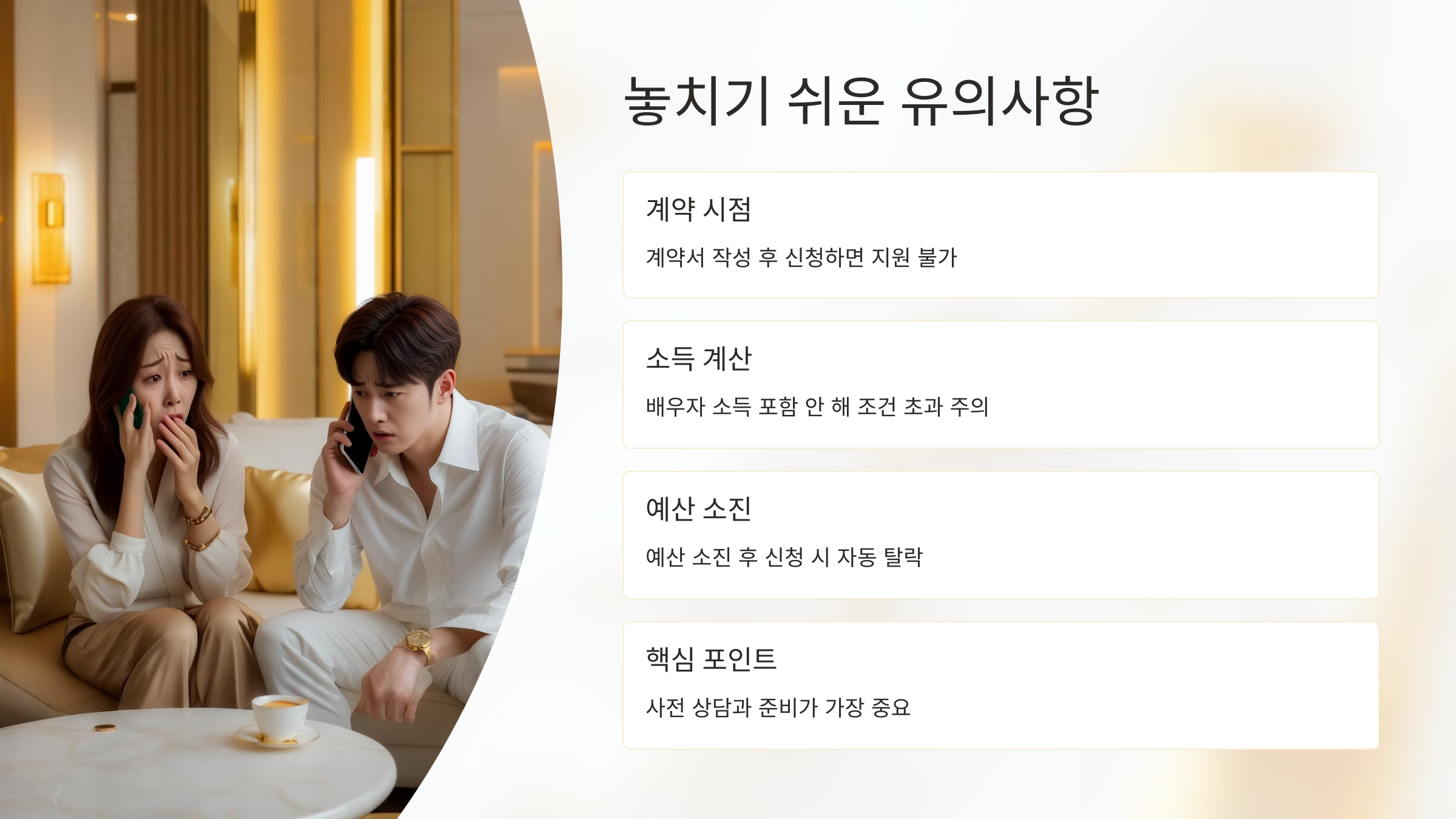 "전세계약 전 상담 필수", "임대인 동의 여부 반드시 체크", "예산 소진 여부 실시간 확인",