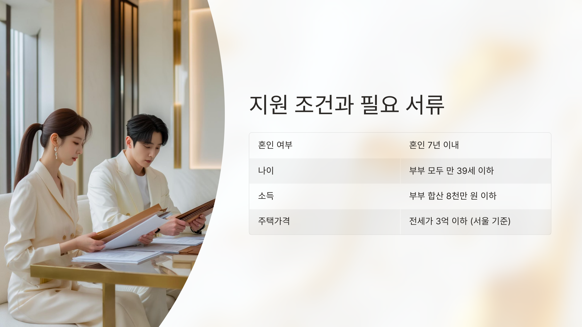 | 나이 | 부부 모두 만 39세 이하 |