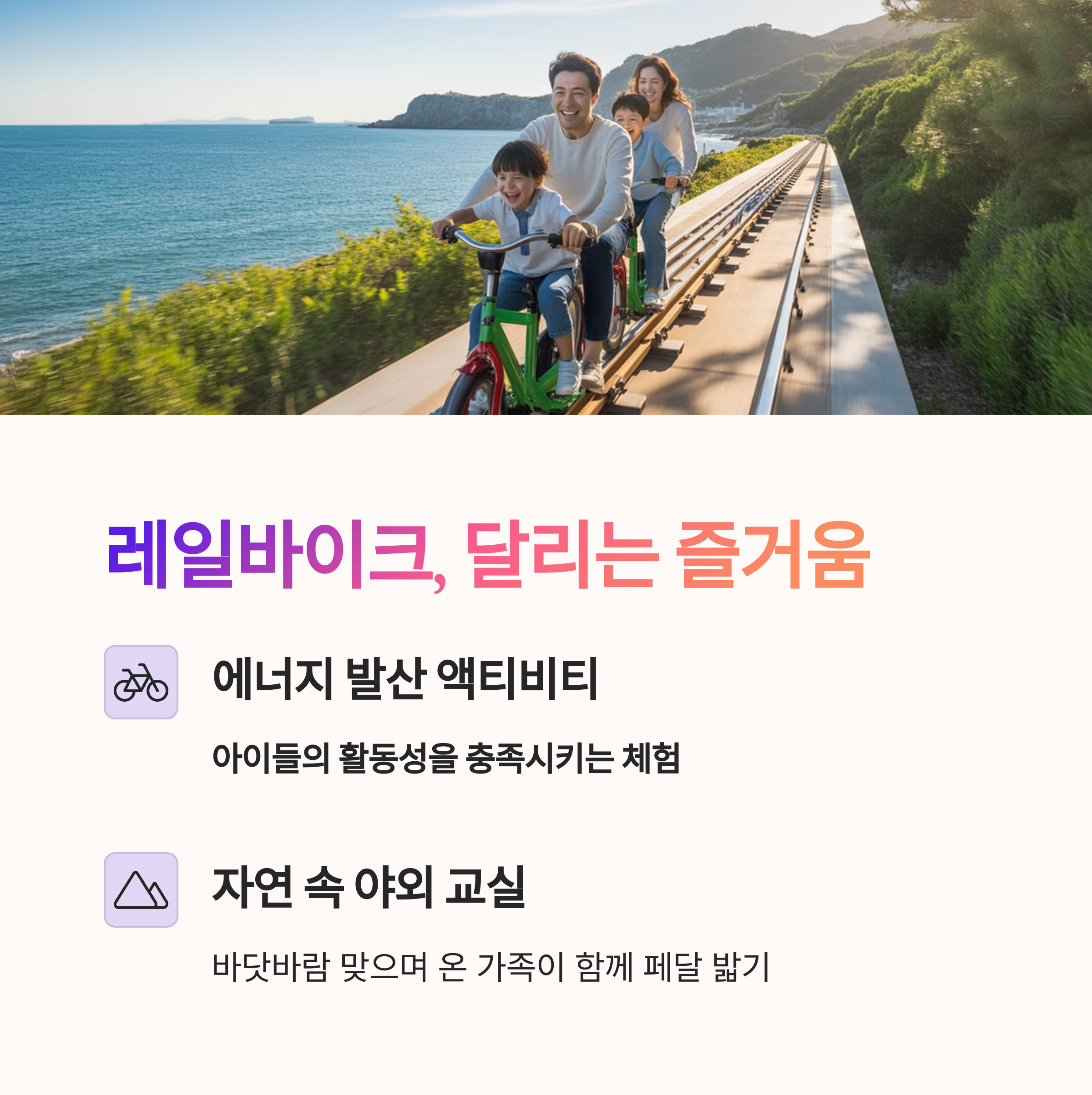 | 체험형 | 레일바이크 | 다양한 포토존과 놀이 요소 가득 |