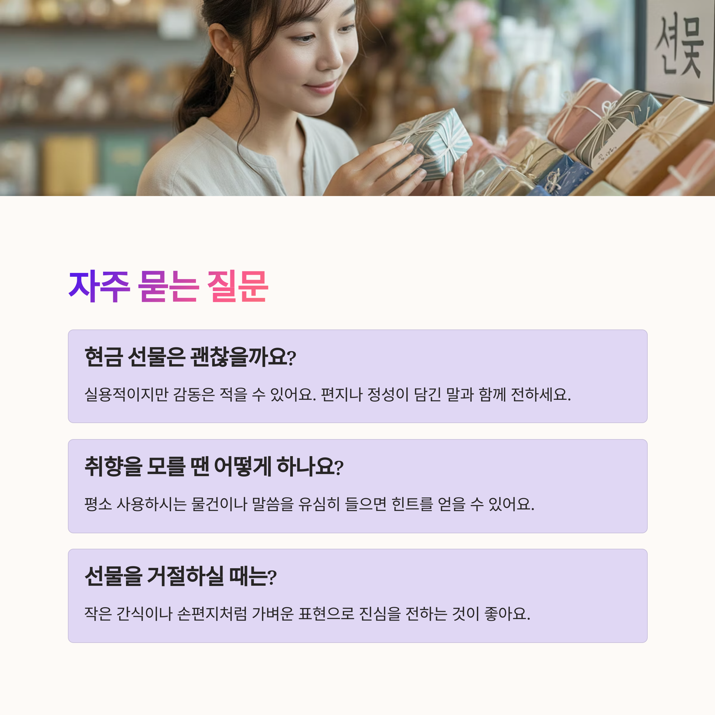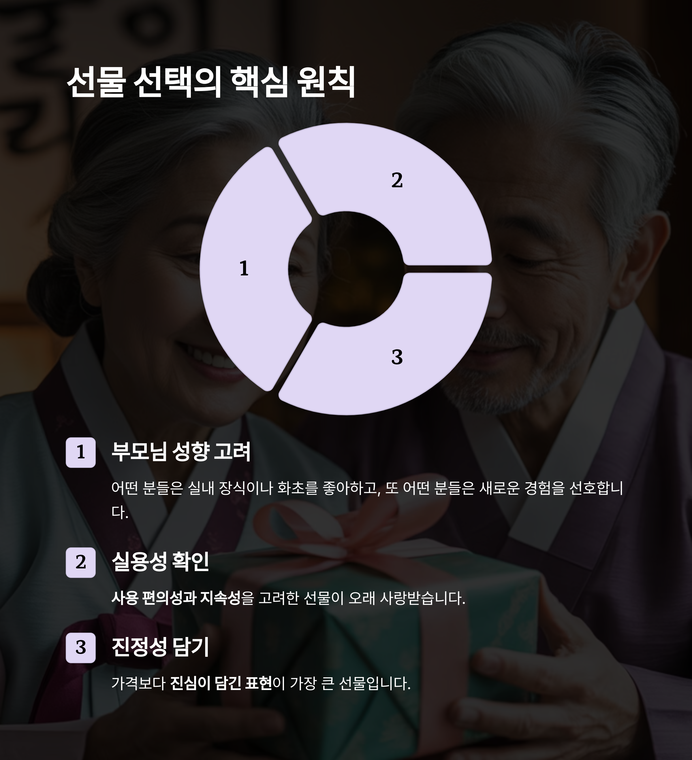 | 선물 기준 | 부모님 취향과 생활에 맞춰 고르는 것이 중요해요 |