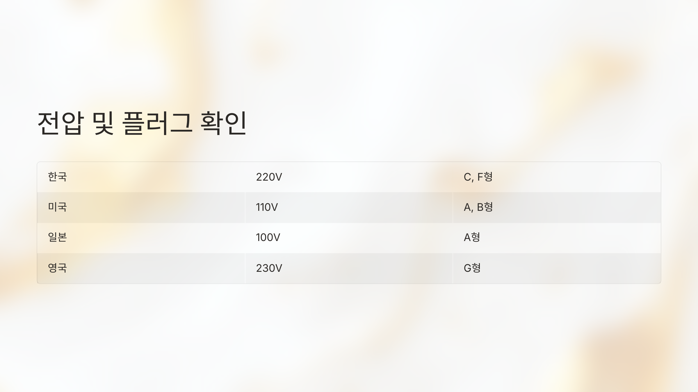 한국은 220V를 사용하지만, 미국은 110V, 일본은 100V 등 차이가 크기 때문에