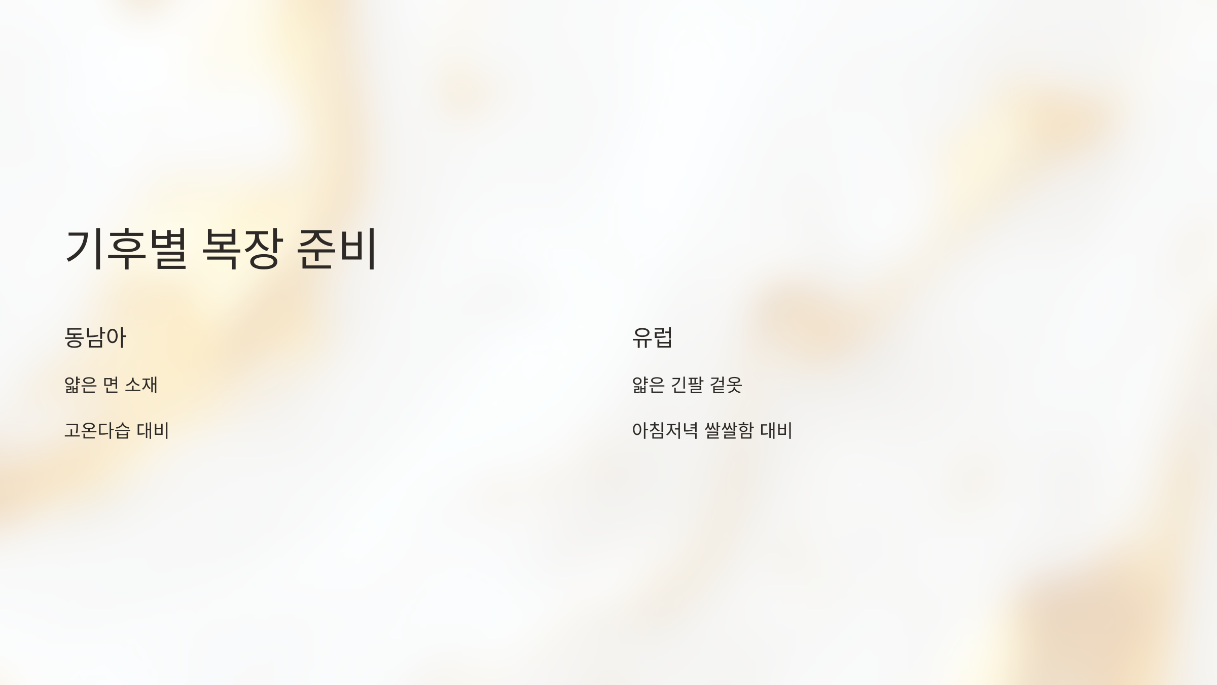 동남아, 유럽, 중동 등 여행지는 모두 기후가 다릅니다.