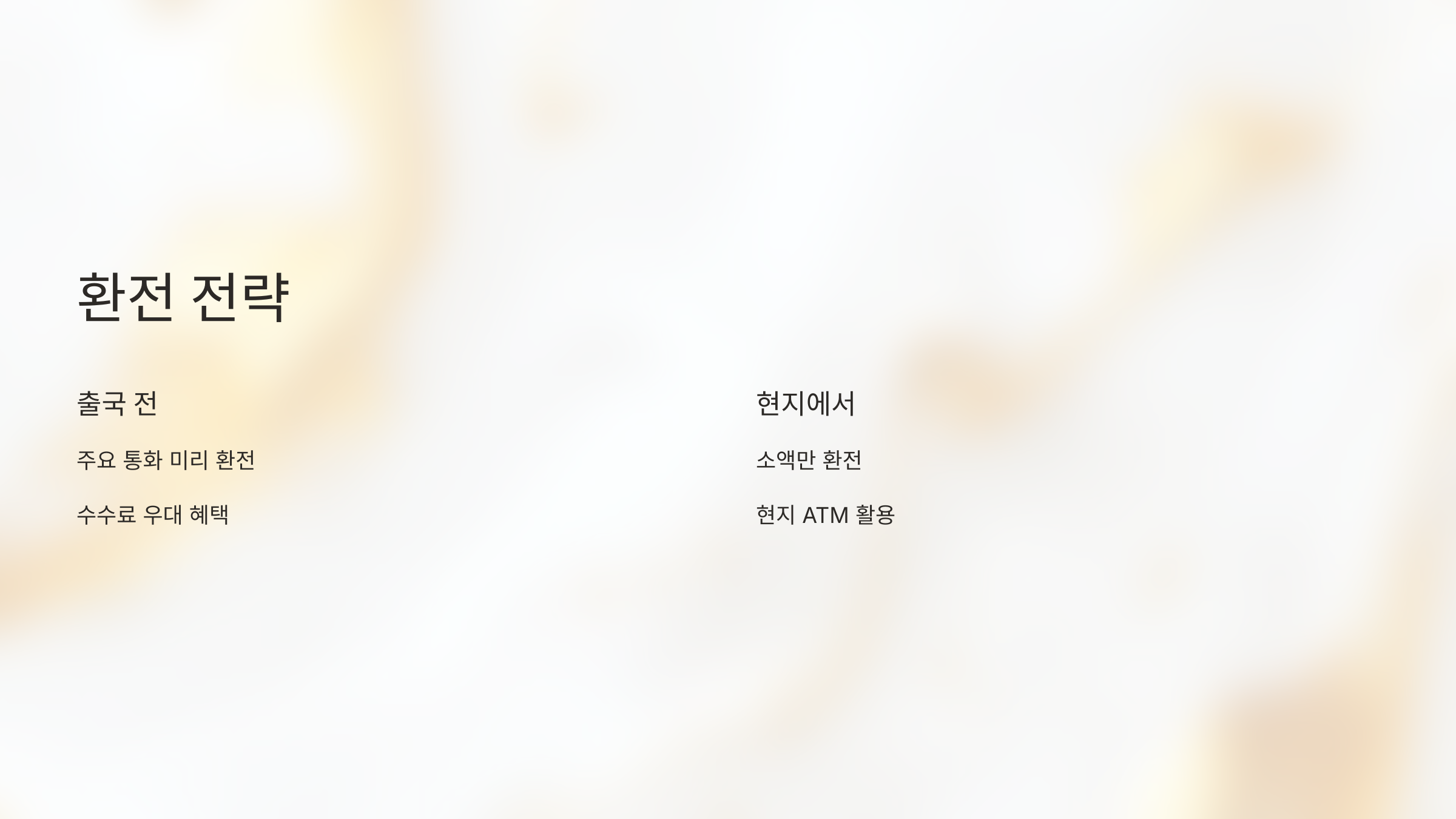 소액만 환전하고 나머지는 현지 ATM에서 출금하는 것도 좋은 방법입니다.