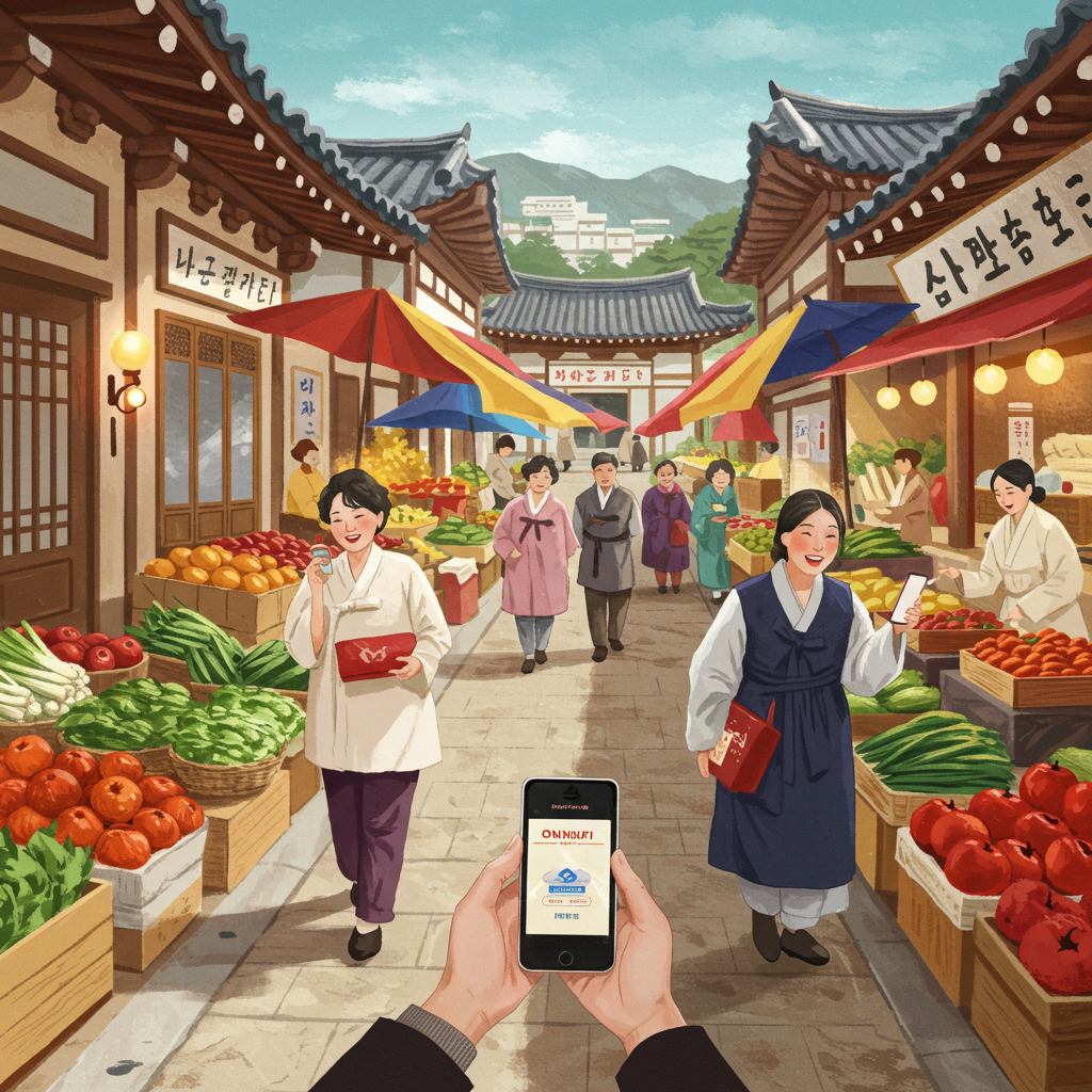 실제로 온누리상품권을 사용해서 알뜰하게 장을 본 제 경험을 공유해드릴게요. 김주부 씨(가상인물)가 온누리상품권으로 마트 대신 전통시장을 이용한 사례입니다.