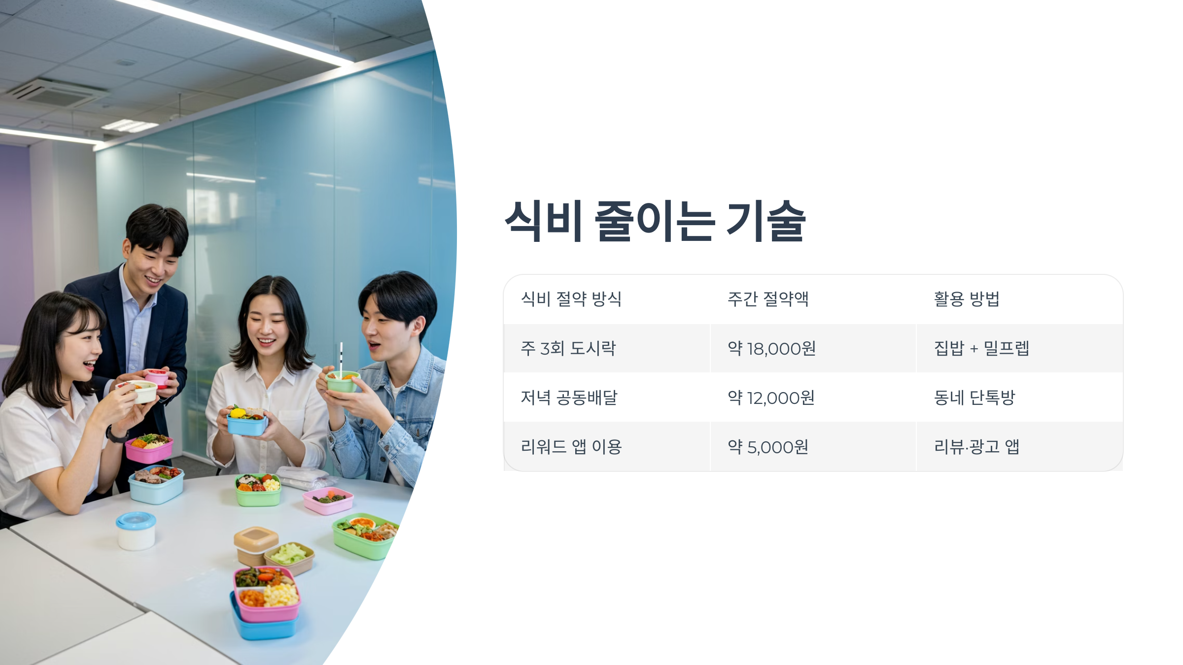 한 달에 외식비만 30만 원 넘게 쓰던 직장인 A씨는 주 3회 도시락, 주 1회 공동구매 활용만으로 식비를 40% 줄였습니다.