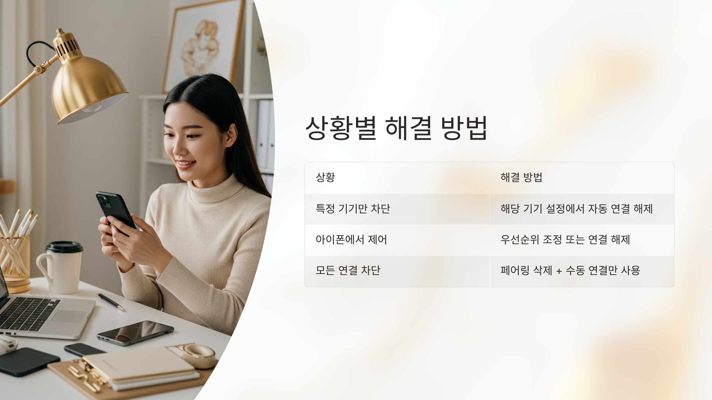 | 모든 자동 연결 막고 싶을 때 | 페어링 삭제 + 수동 연결만 사용 |