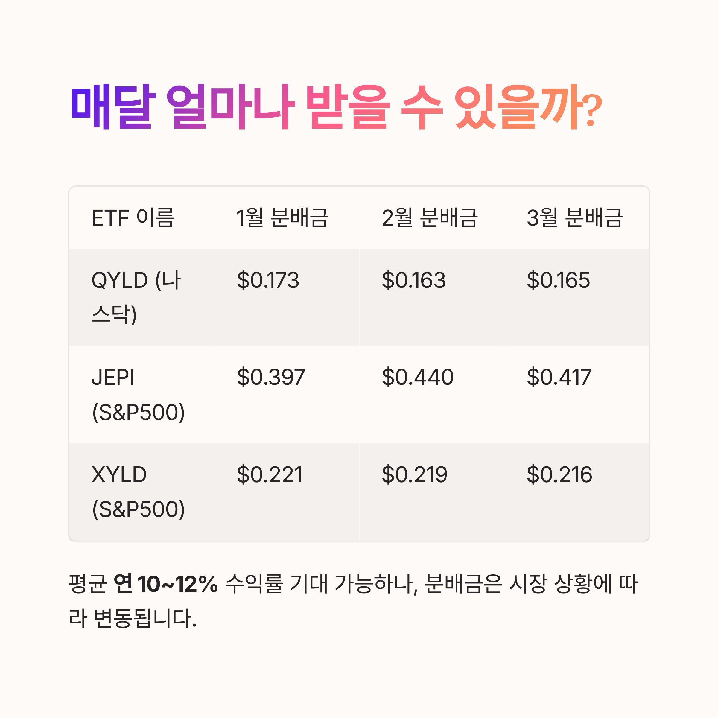 커버드콜 ETF의 분배금, 매달 얼마나 받을 수 있을까?