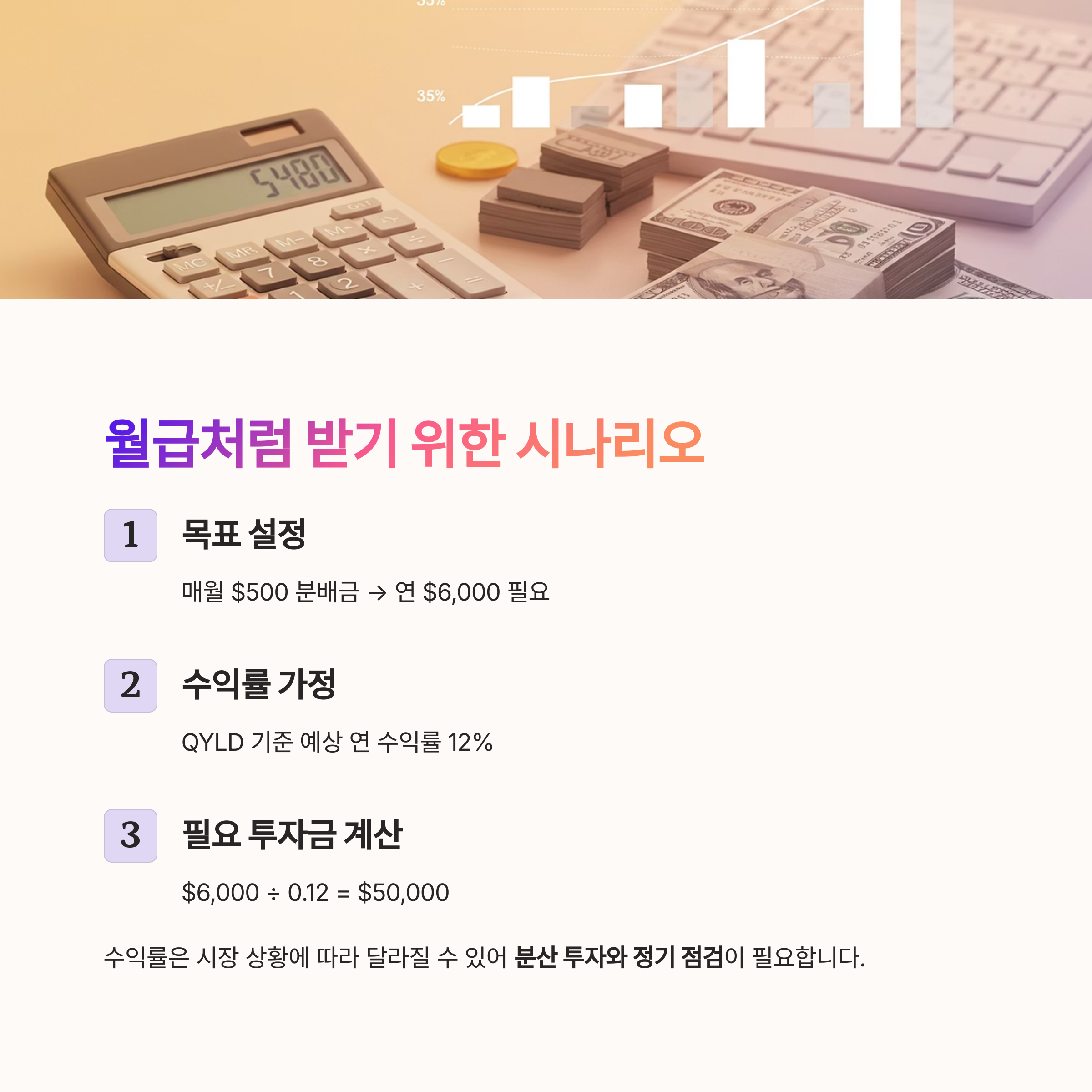 - QYLD 기준 예상 연 수익률 12% 가정 시