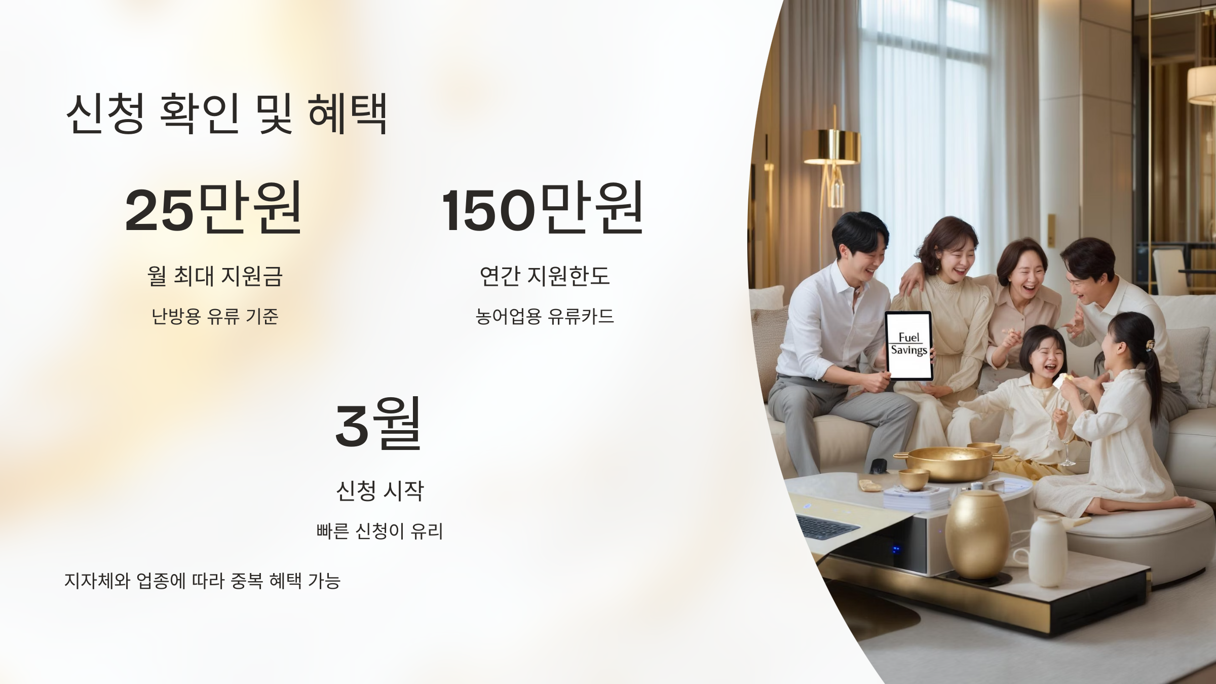 가구 소득 및 에너지 사용 방식에 따라 신청 기준을 반드시 확인하세요.