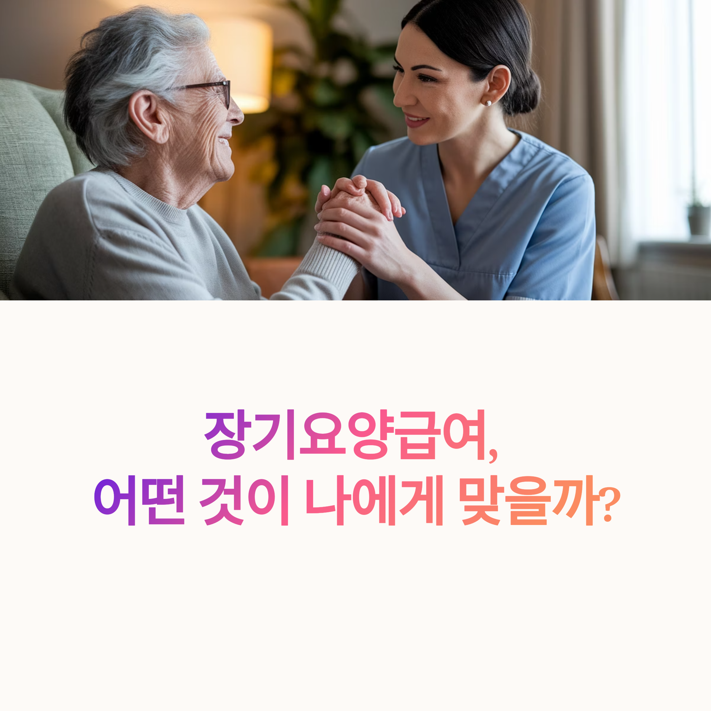 장기요양급여는 노후를 위한 중요한 선택지입니다. 각 급여 유형은 수급자의 신체 상태, 가족 환경, 경제 상황에 따라 선택이 달라질 수 있습니다. 시설급여는 전문성과 안전성을 제공하며, 방문급여는 정서적 안정과 가정 유지의 장점이 있습니다. 현금급여는 가족이 주도적으로 돌봄을 제공하는 경우에 유용하지만, 부담을 고려해야 합니다. 이 글이 각 급여의 특성과 조건을 명확히 이해하고 합리적인 선택에 도움이 되시길 바랍니다.