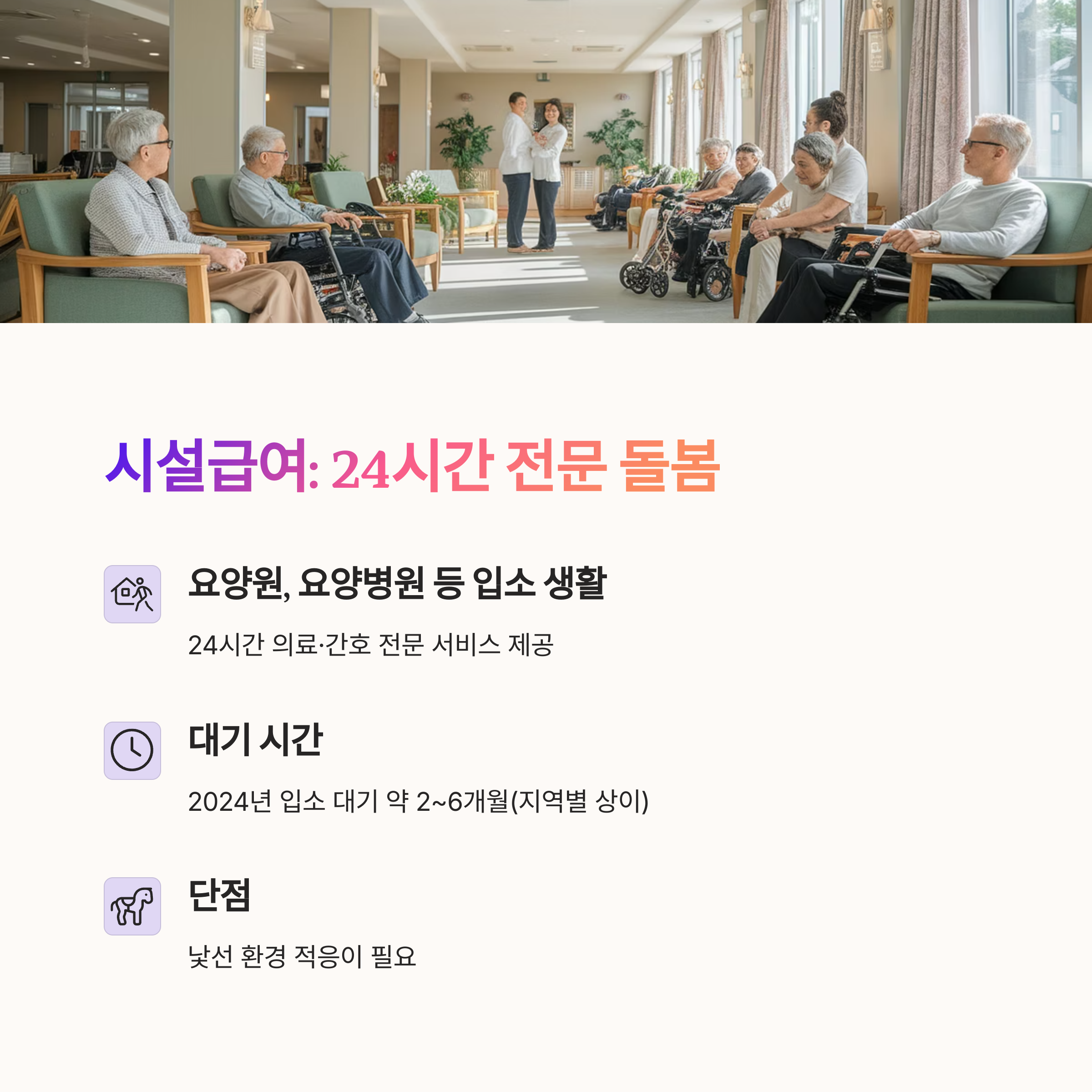 | 시설 대기 필요, 정서적 이탈감 우려 | 시간 제한, 응급 대응 한계 | 전문성 부족, 가족 돌봄 부담 증가 |