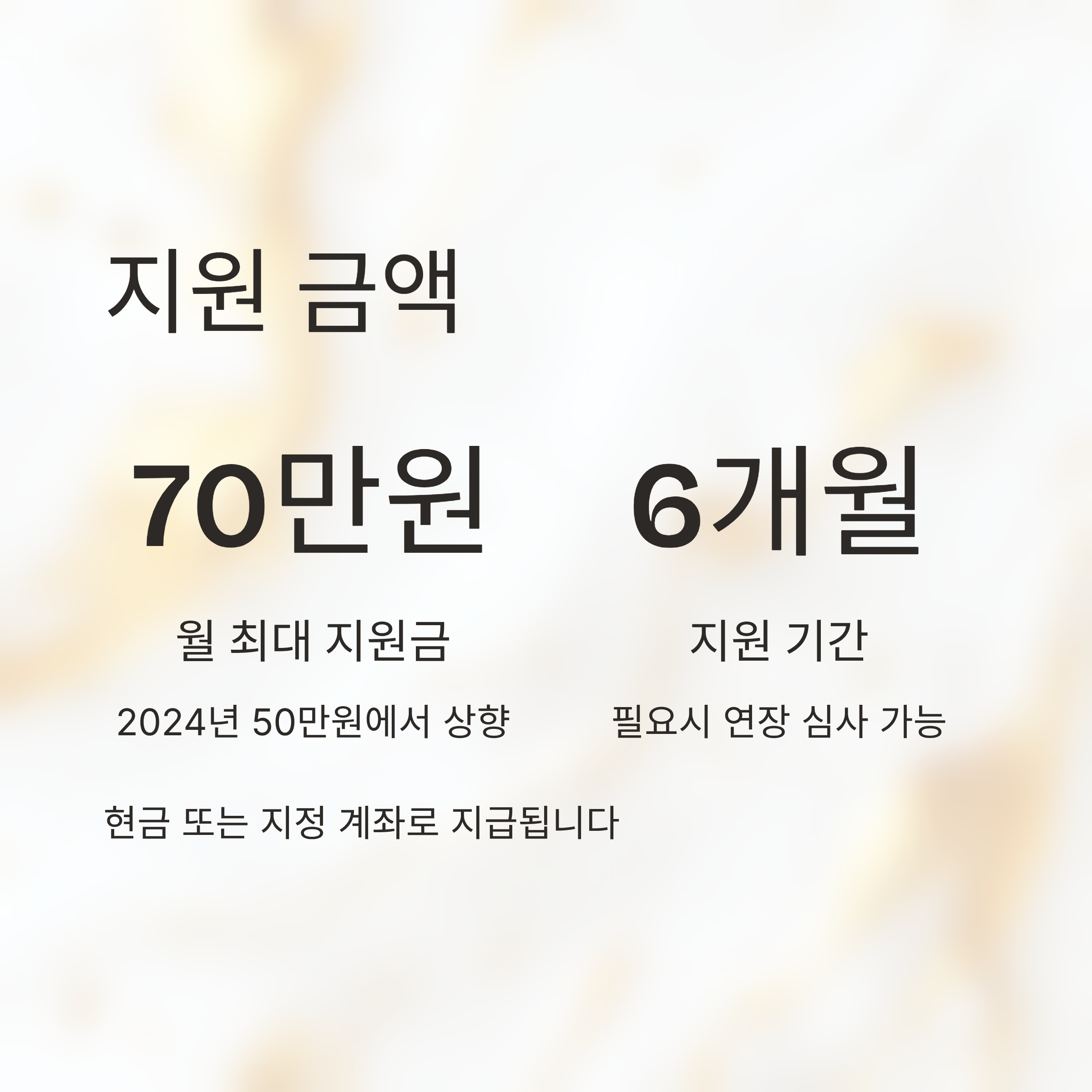 | 최대 지원금 | 월 50만원 | 월 70만원 |