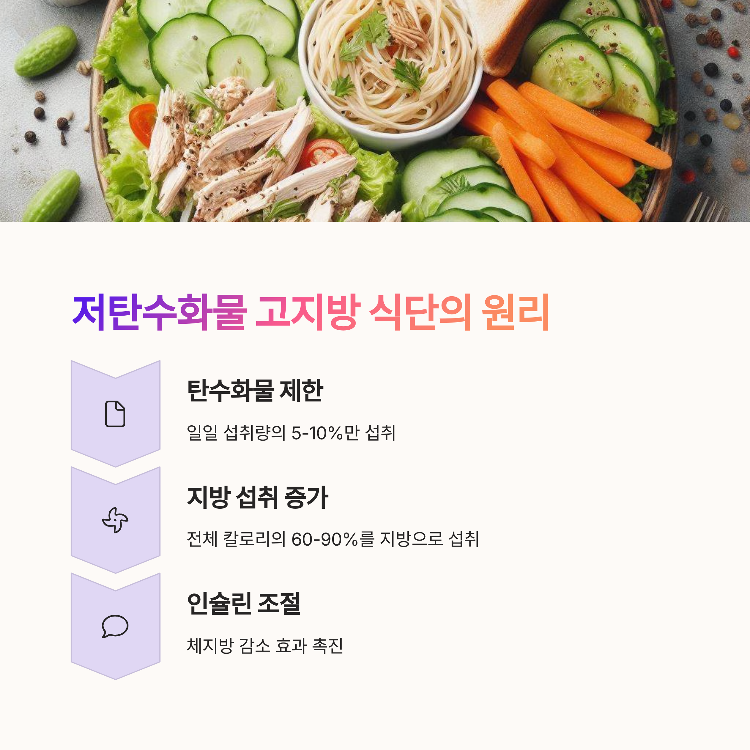 | 저탄수화물 고지방이란? | 탄수화물은 낮추고, 지방 섭취를 높이는 식단입니다. |