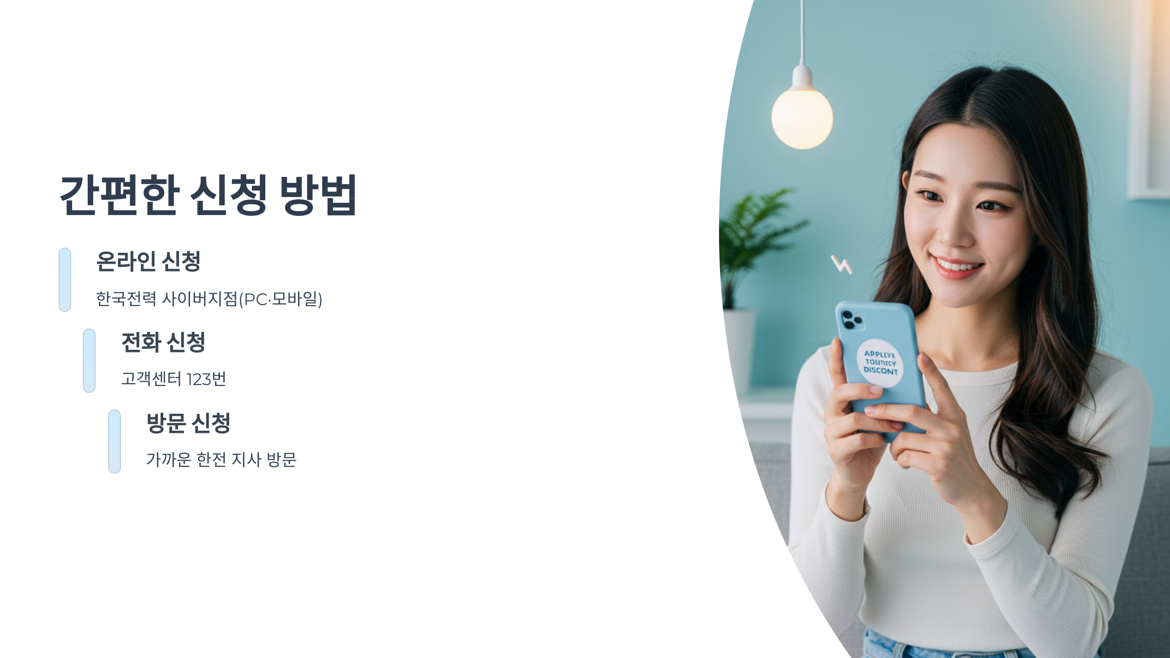 전기요금 할인 신청은 생각보다 매우 간단합니다.