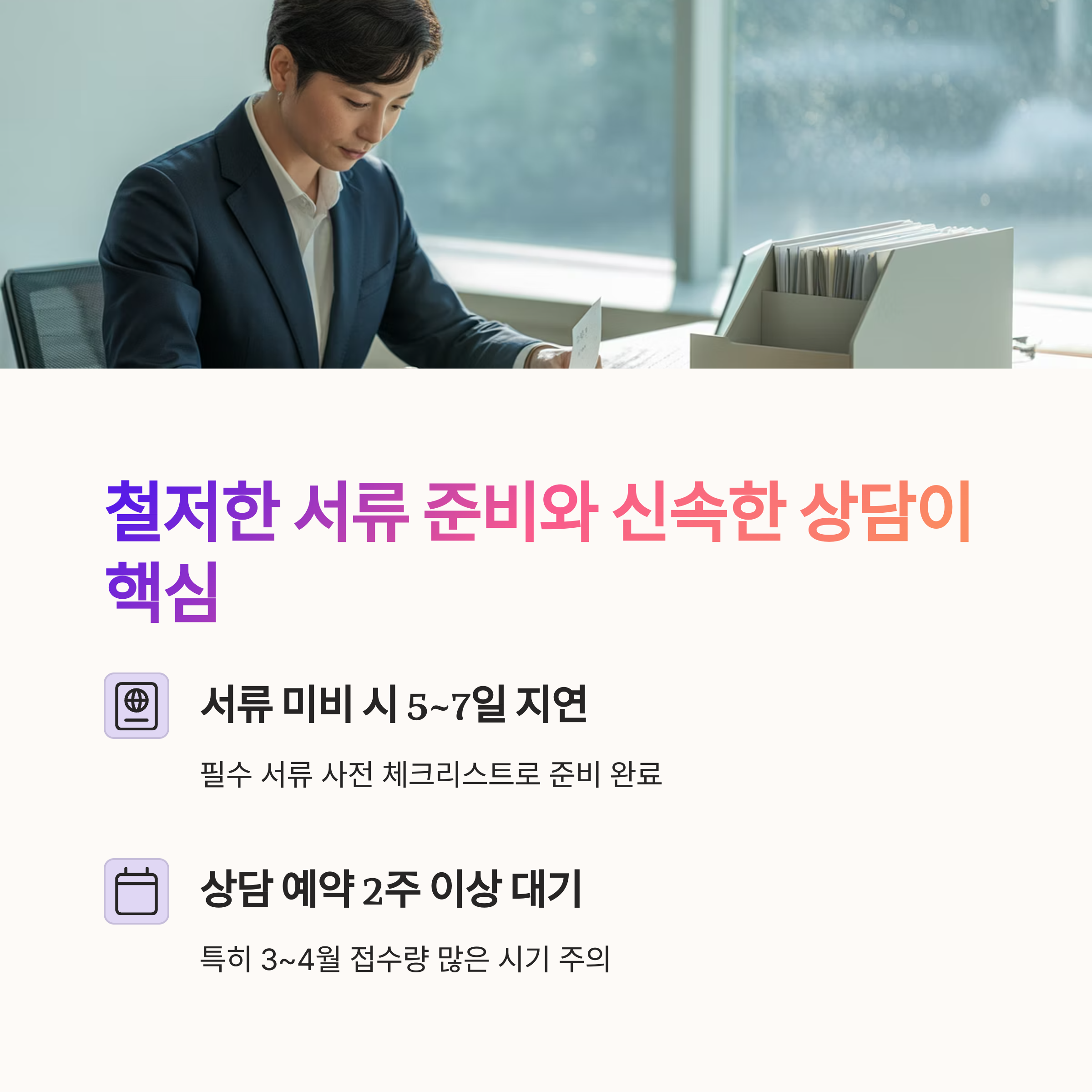 | 서류 준비 | 상담 예약 | 실행 속도 |