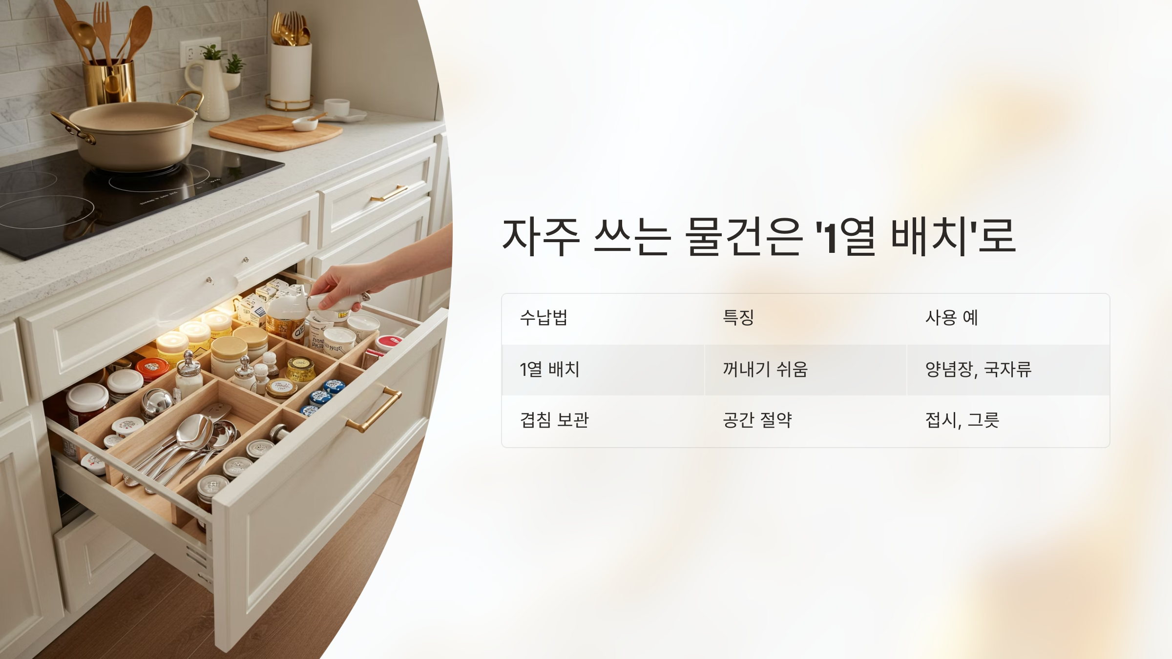 | 1열 배치 | 꺼내기 쉬움 | 양념장, 국자류 |