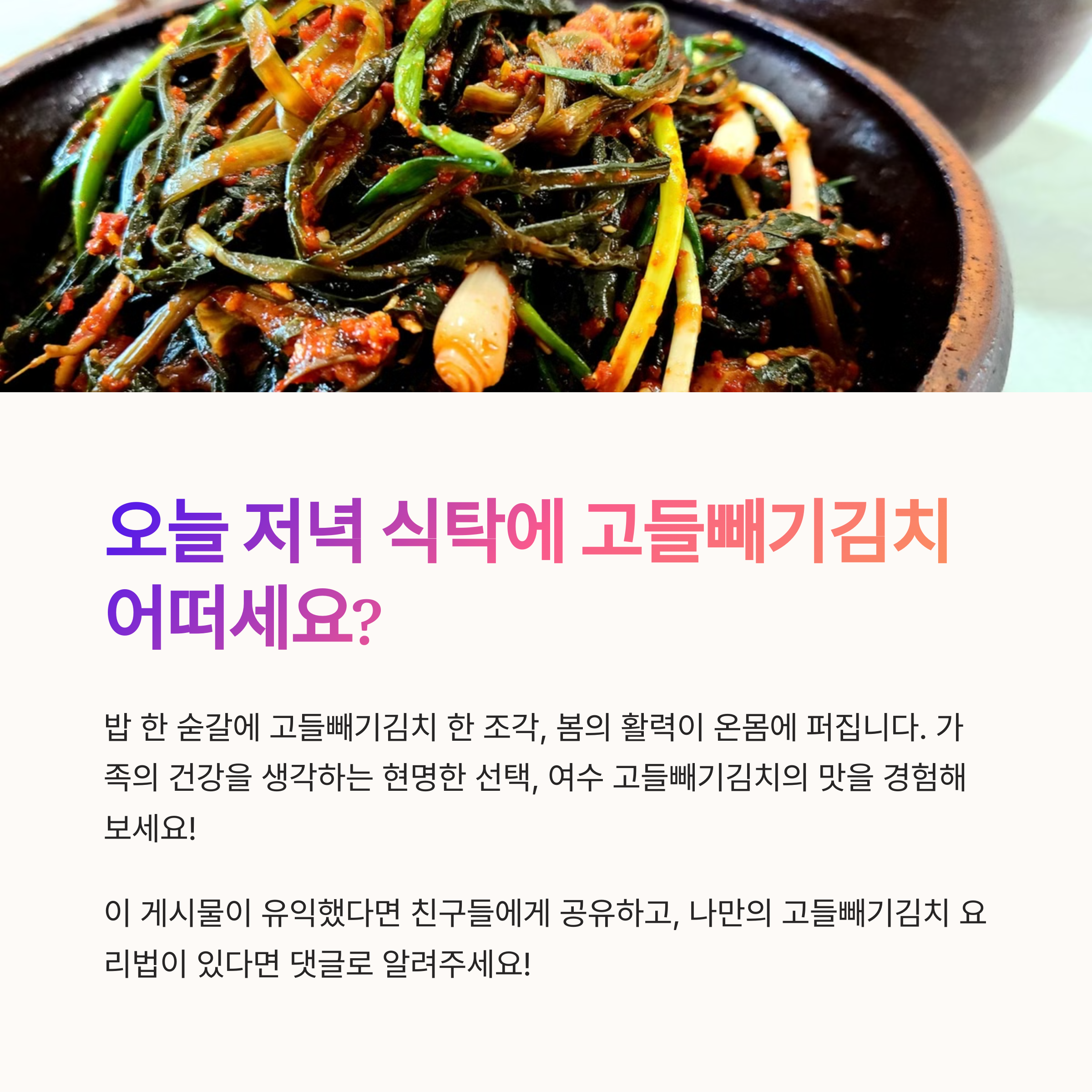| 고들빼기김치 | 여수 밥상 | 봄철 건강식 |