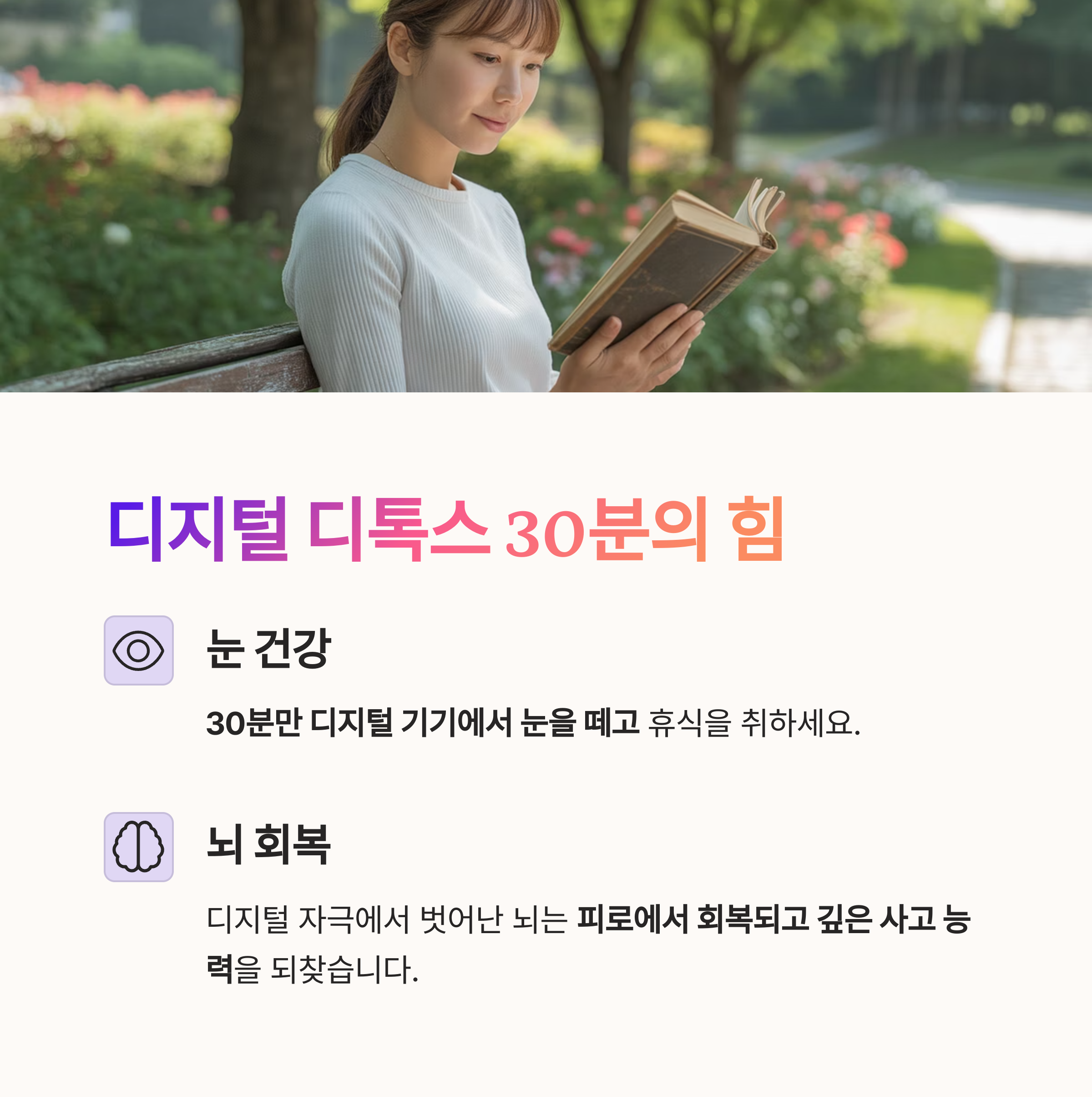 | 디지털 디톡스 | 하루 30분 | 눈 건강, 사고 회복 |