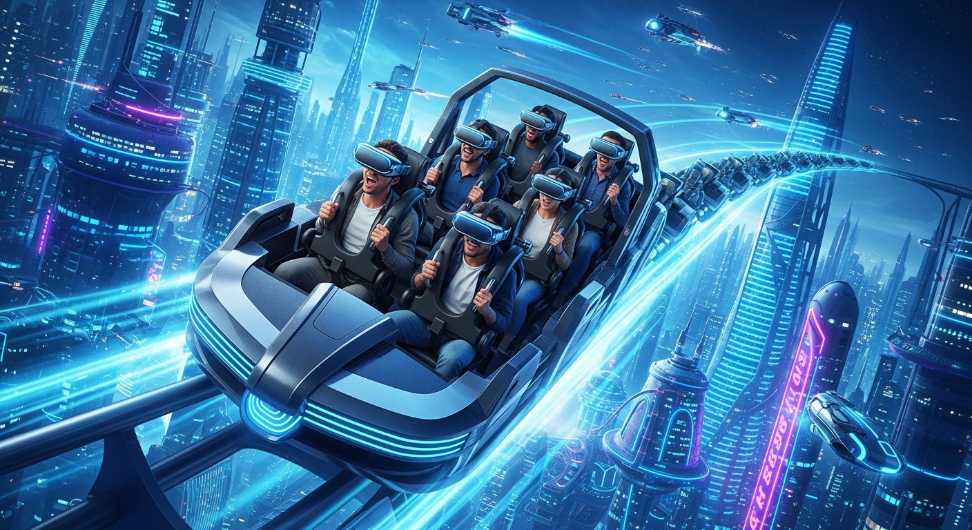 넥스트월드의 대표 어트랙션. VR 헤드셋을 착용하고 실제 레일 좌석에 앉으면 미래 도시 상공을 비행하는 파일럿이 돼요. 짜릿한 속도감과 고층 빌딩 사이를 넘나드는 아찔함은 그 어떤 롤러코스터도 따라올 수 없었습니다. 바람과 진동 효과로 제가 하늘을 날고 있다는 착각에 빠졌어요!