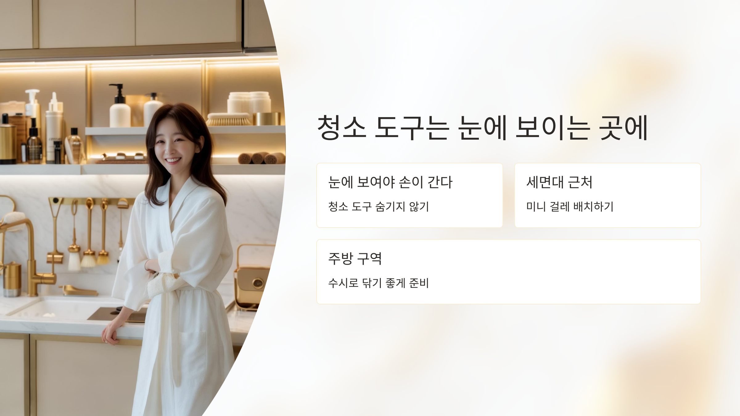 '눈에 보여야 손이 간다'는 원칙을 따라 청소 도구도 꺼내두는 게 더 효과적입니다.
