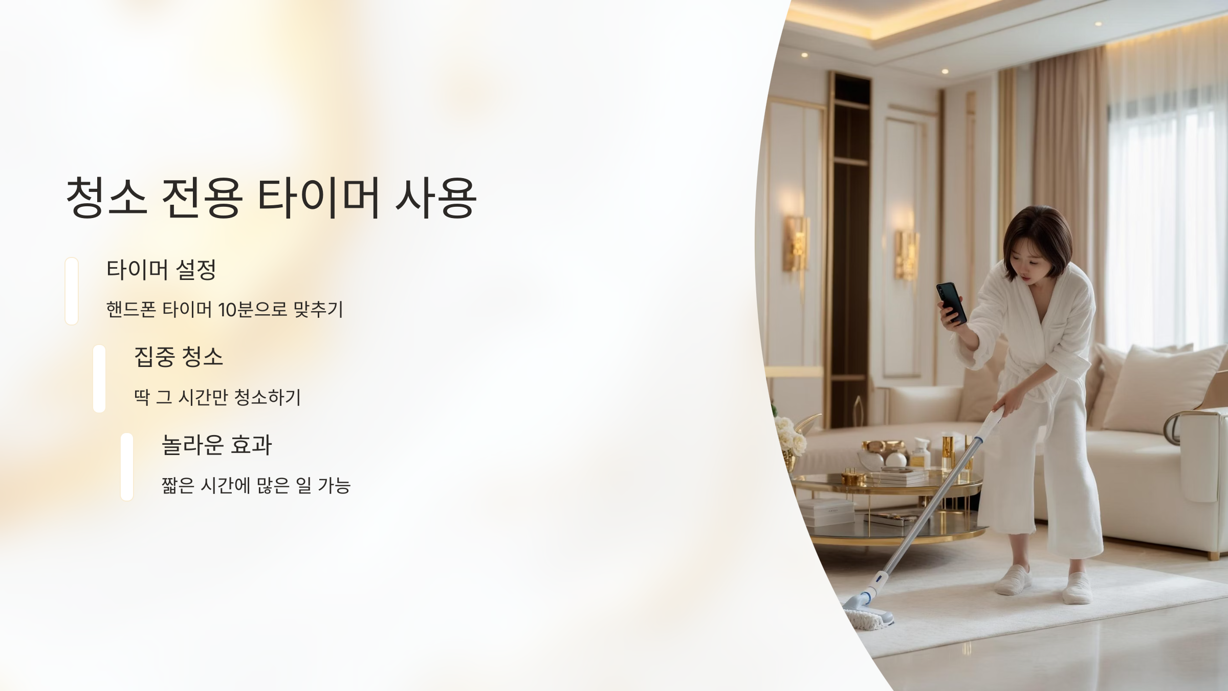 | 청소 타이머 | 10분만 청소 | 부담 감소, 시간 절약 |