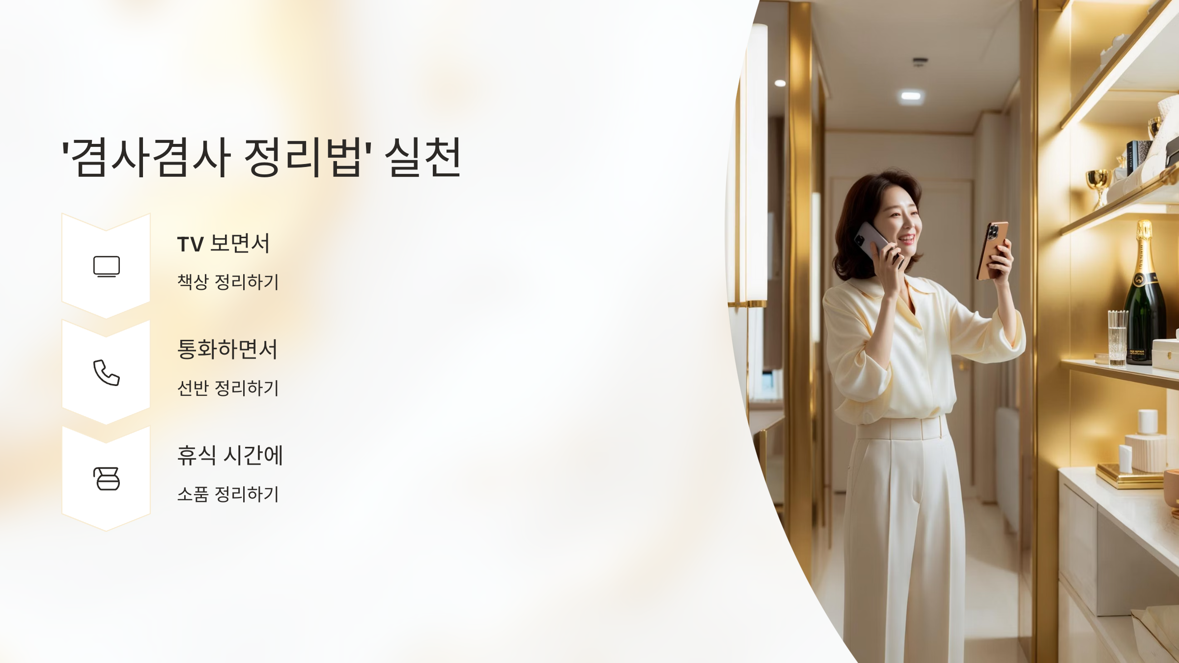 | 겸사겸사 정리 | 다른 활동과 병행 | 꾸준한 정리 습관 생성 |