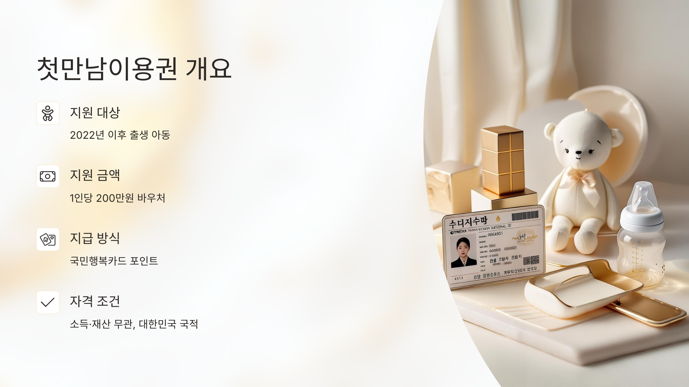 첫만남이용권은 2022년 이후 출생한 아동에게 1인당 200만 원 상당의 바우처를