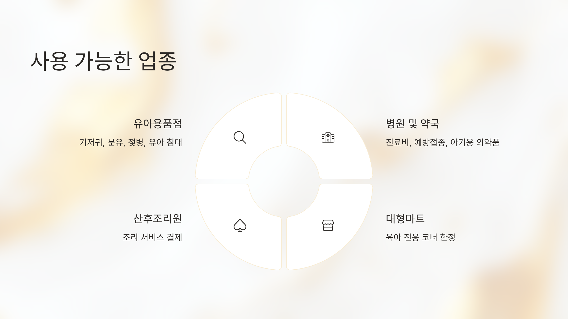 첫만남이용권은 육아와 출산에 관련된 필수 용품 또는 서비스에만 사용이 가능합니다.