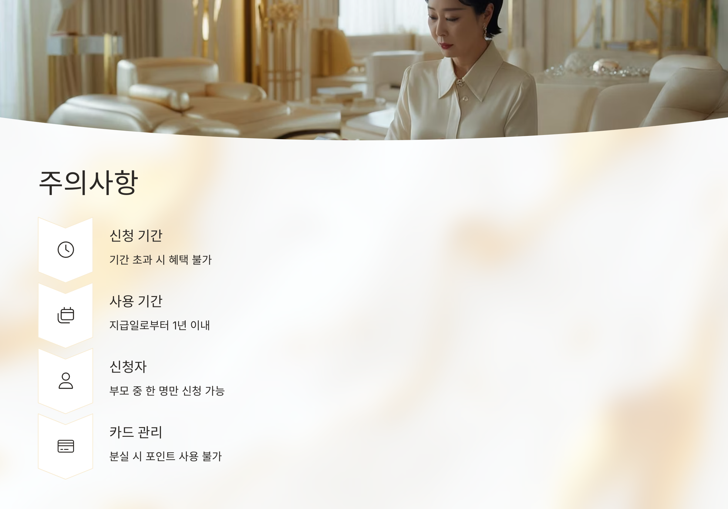 - 카드 분실 또는 해지 시 지급된 포인트도 사용할 수 없습니다.