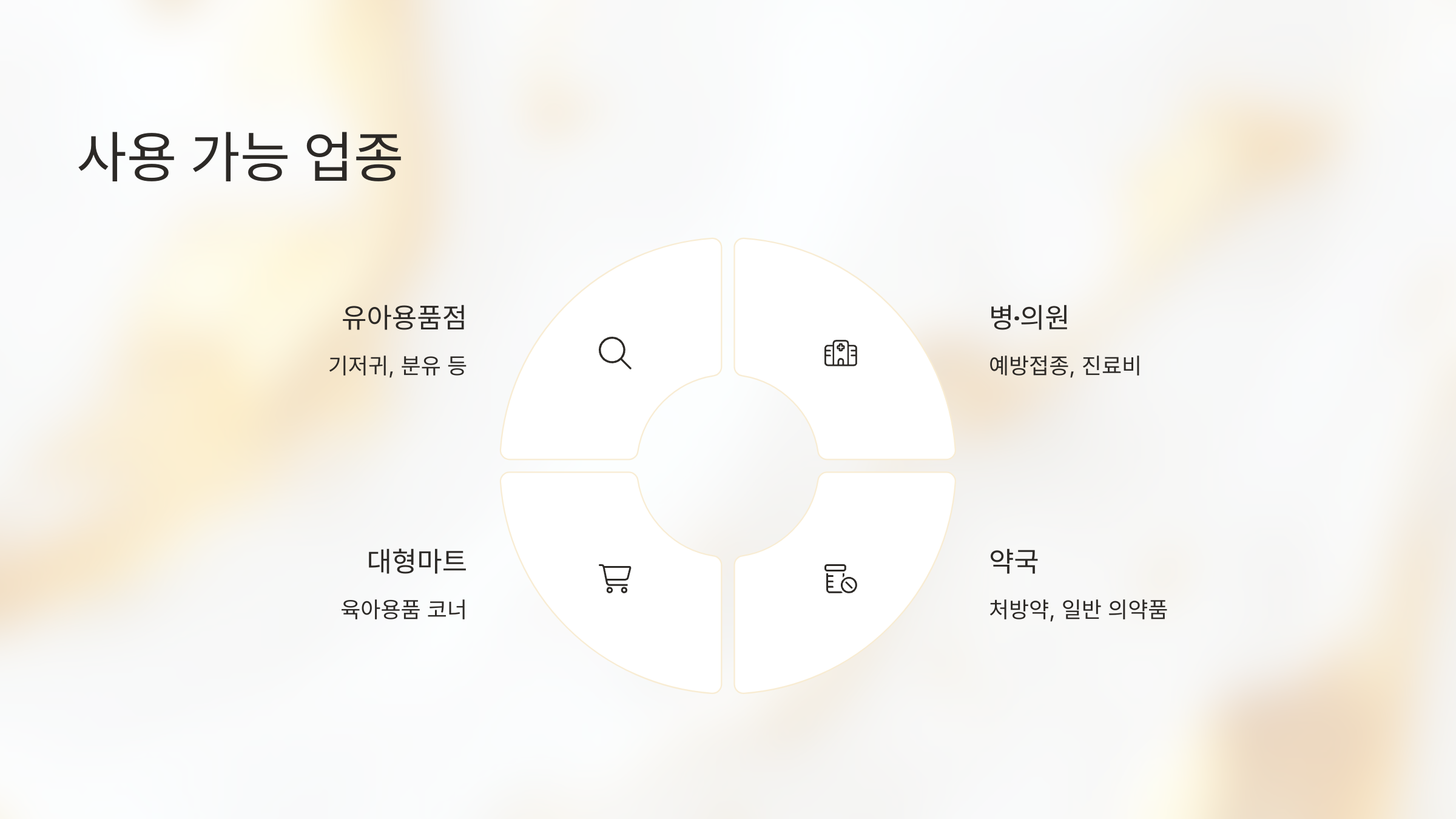 | 유아용품점 | 기저귀, 분유 등 |