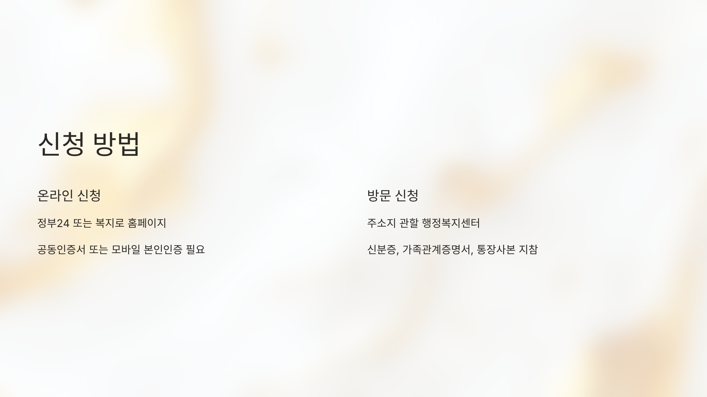 - 정부24(https://www.gov.kr) 또는 복지로 홈페이지에서 신청 가능