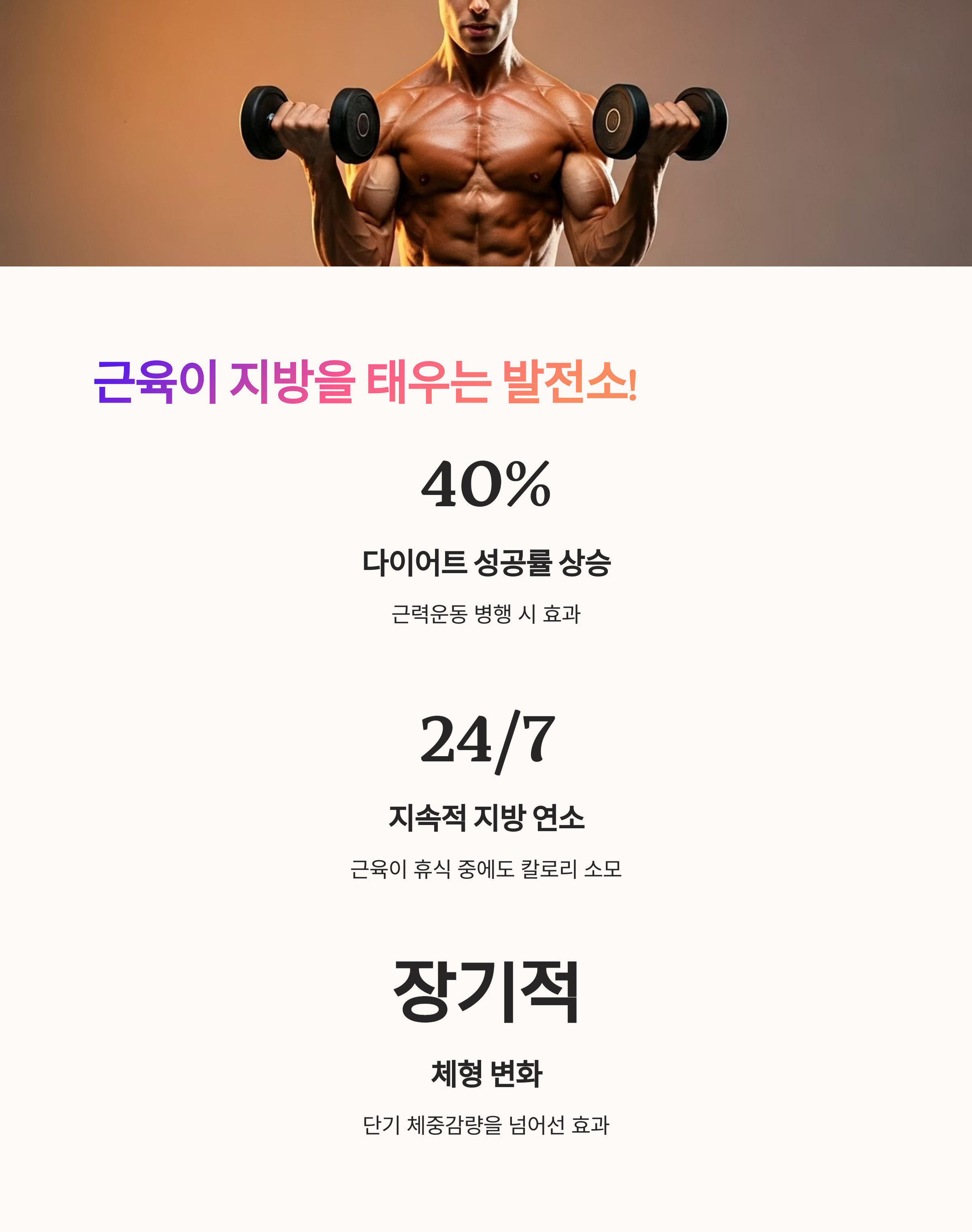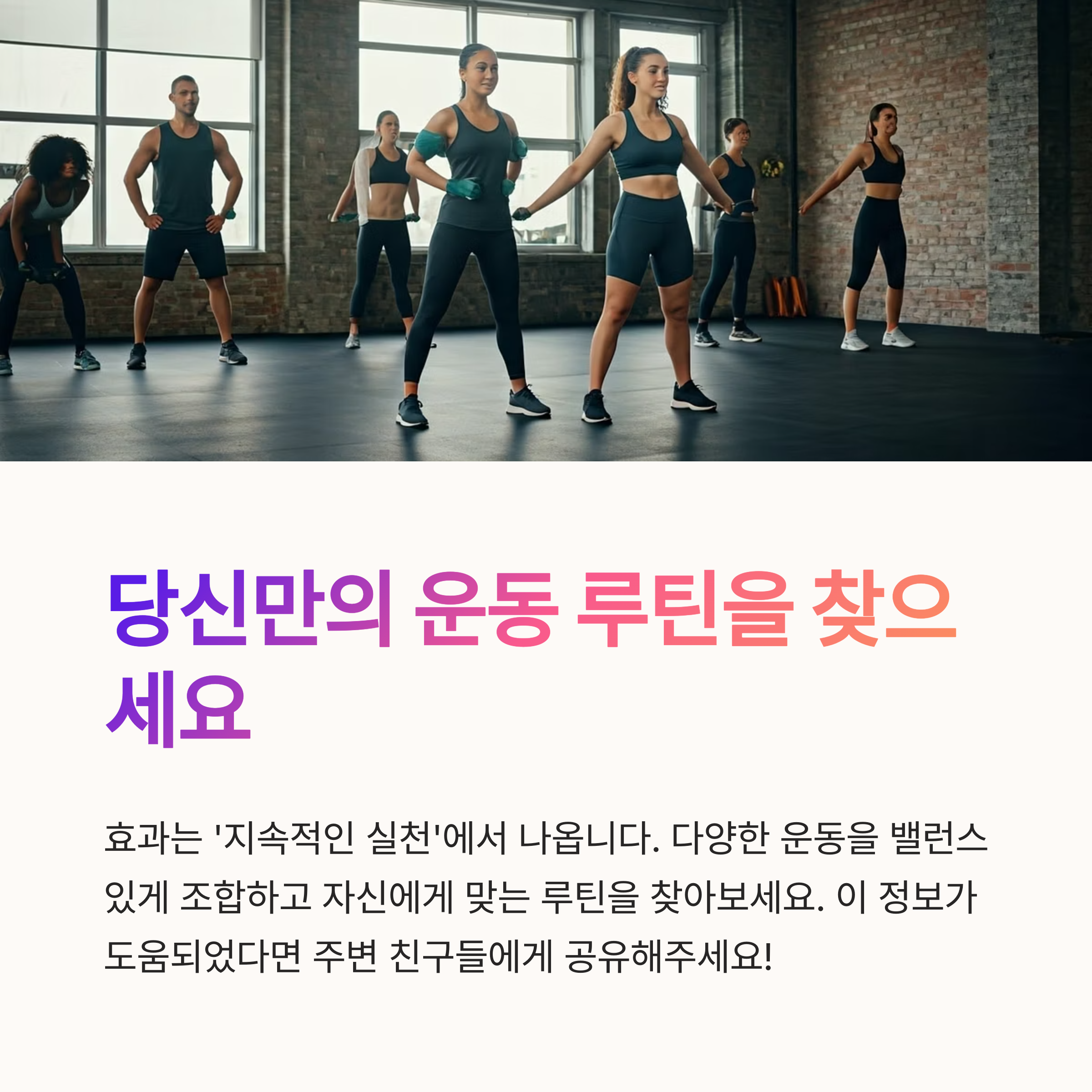 | 유산소+근력 복합 루틴 | 근육량 유지와 체지방 감량을 동시에 잡을 수 있습니다. |