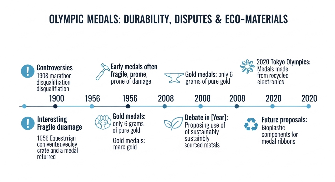 - ✅ 친환경 소재 내구성 논란: 재활용 플라스틱 및 산업 폐기물 금속으로 제작된 친환경 메달의 취약한 내구성이 원인으로 지목되고 있습니다.