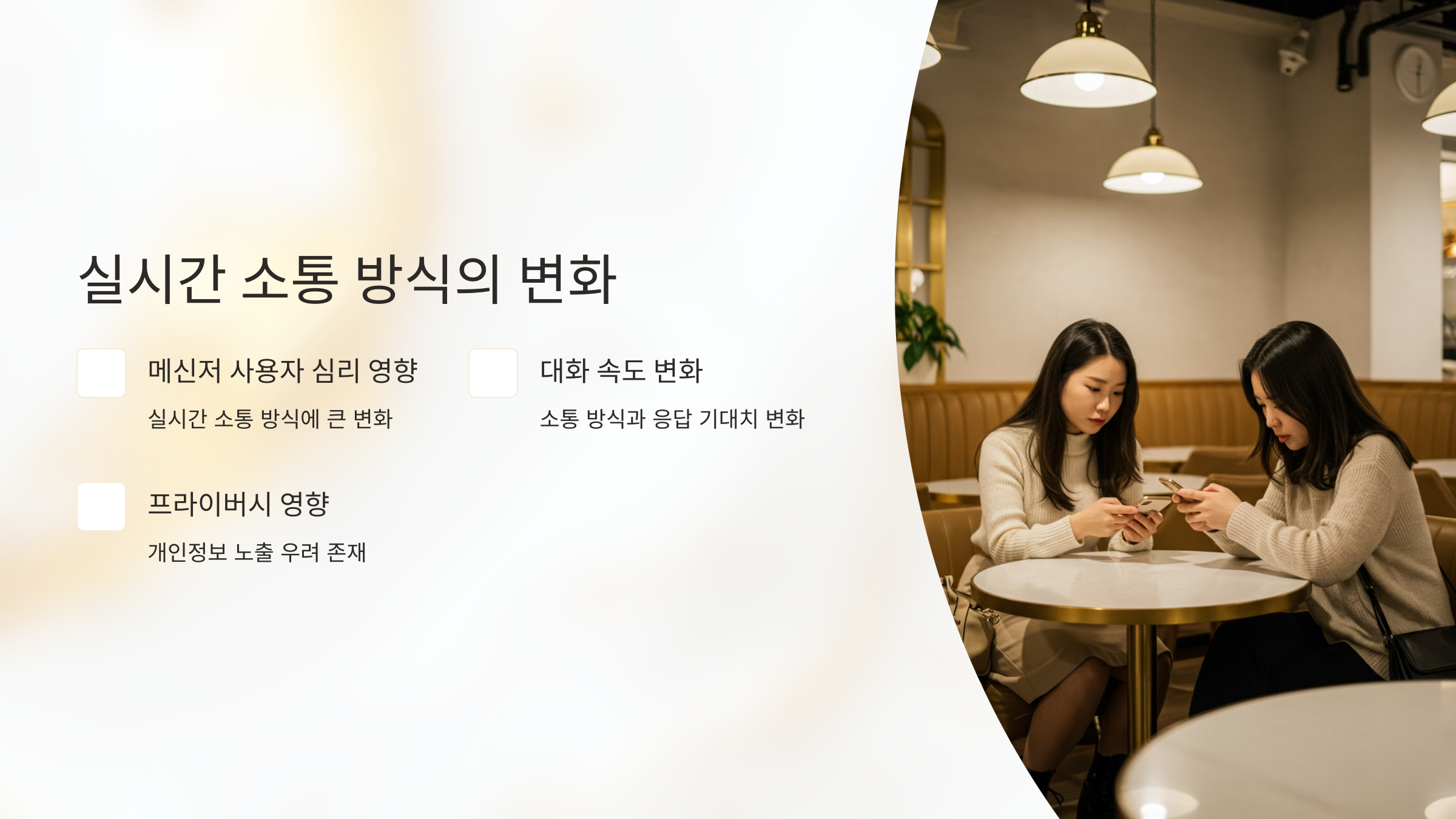 메신저 사용자의 심리, 대화 속도, 프라이버시까지 영향을 받을 수 있어 그 파급력은 상당합니다.