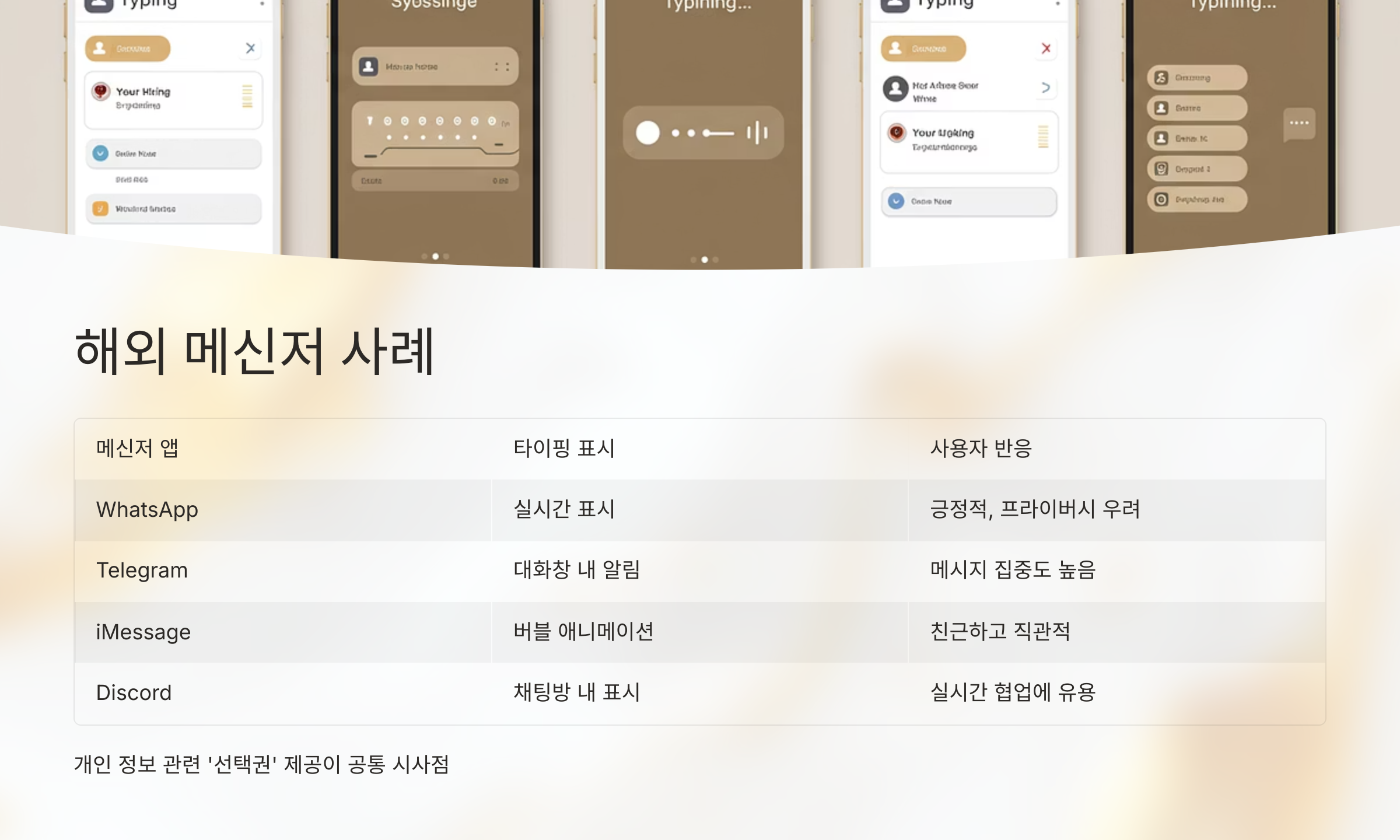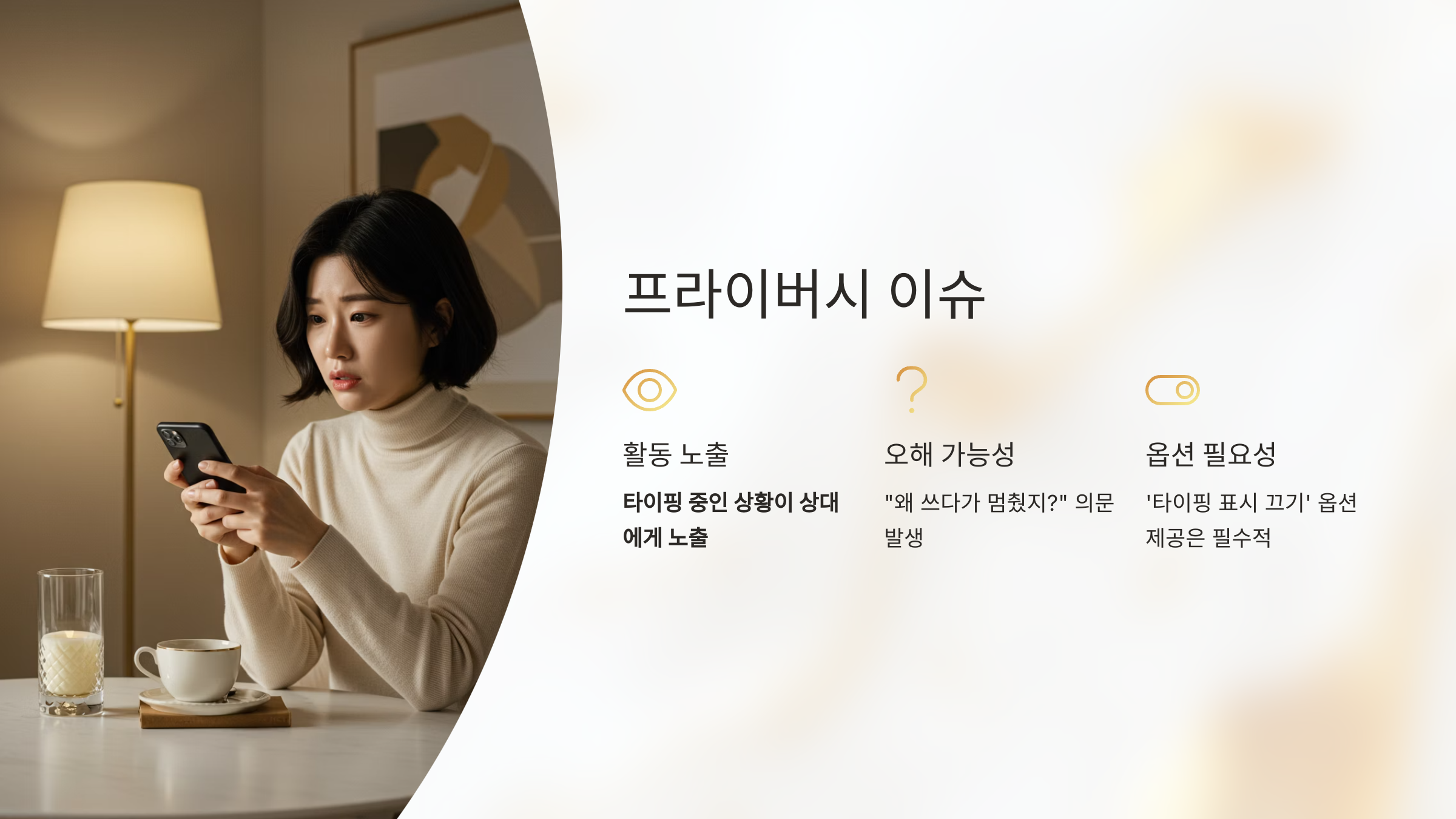 프라이버시 민감 사용자를 위한 '타이핑 표시 끄기' 옵션 제공은 필수적입니다.