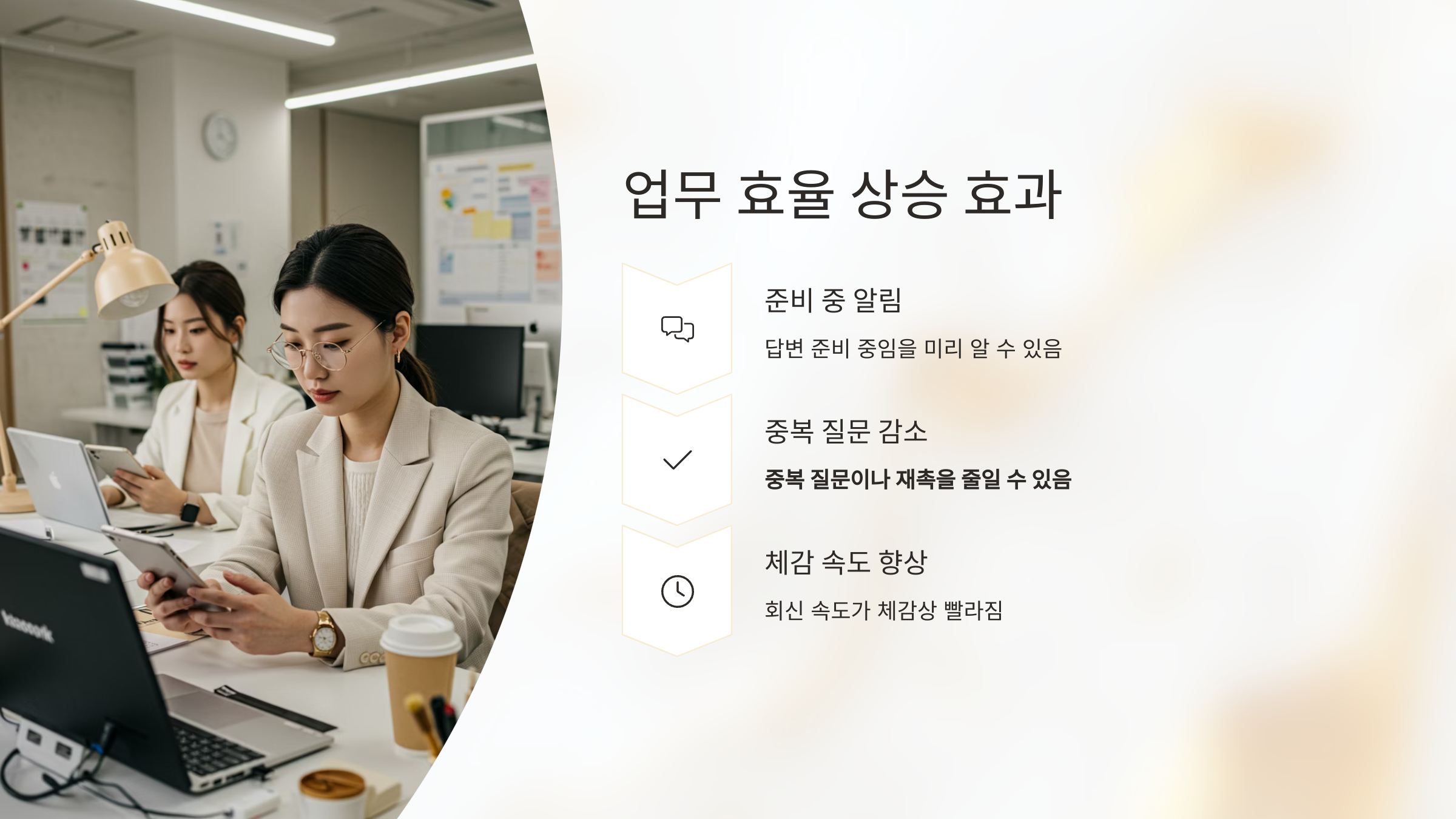 중복 질문이나 재촉을 줄일 수 있으며, 회신 속도도 체감상 빨라집니다.