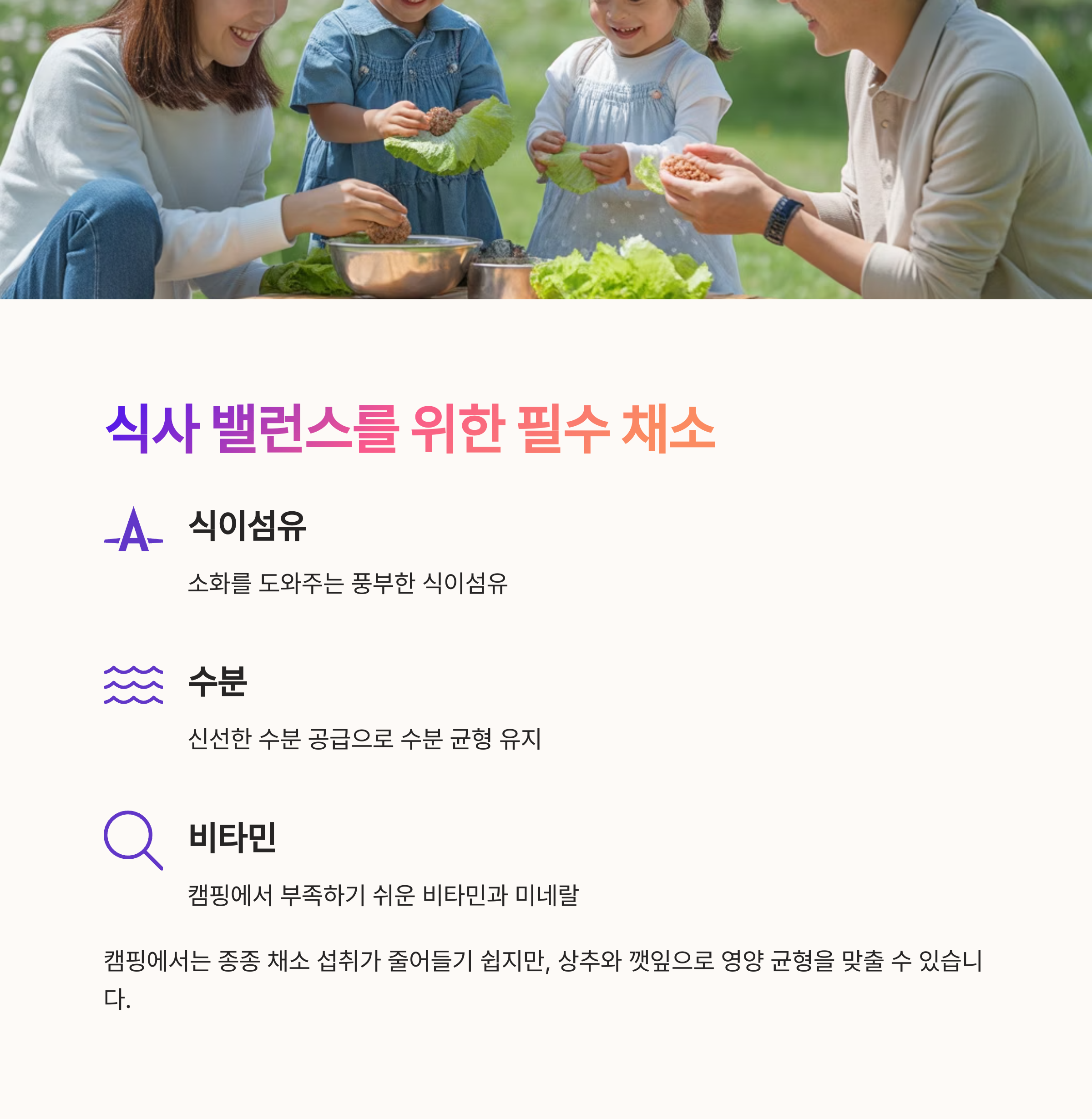 캠핑에서는 종종 채소 섭취가 줄어들기 쉽습니다.
