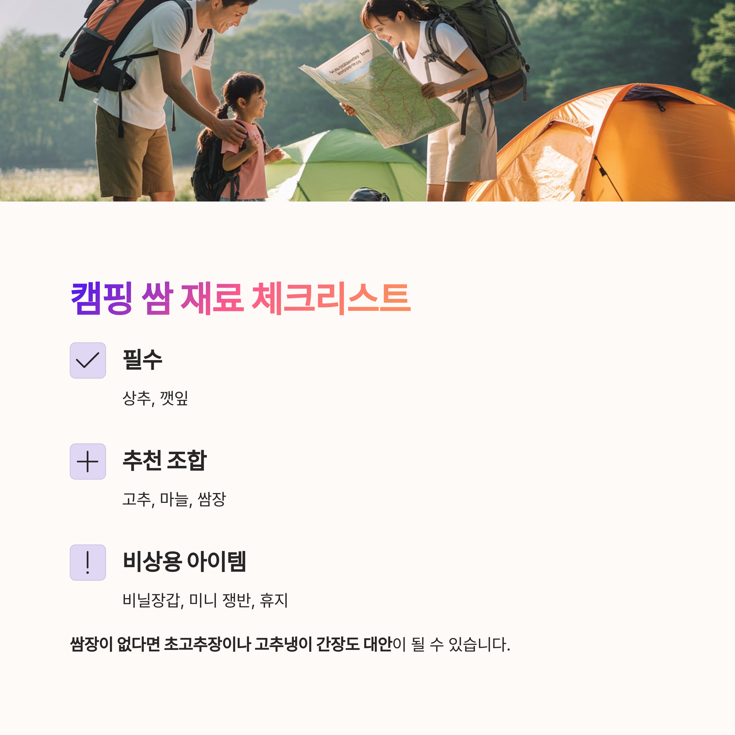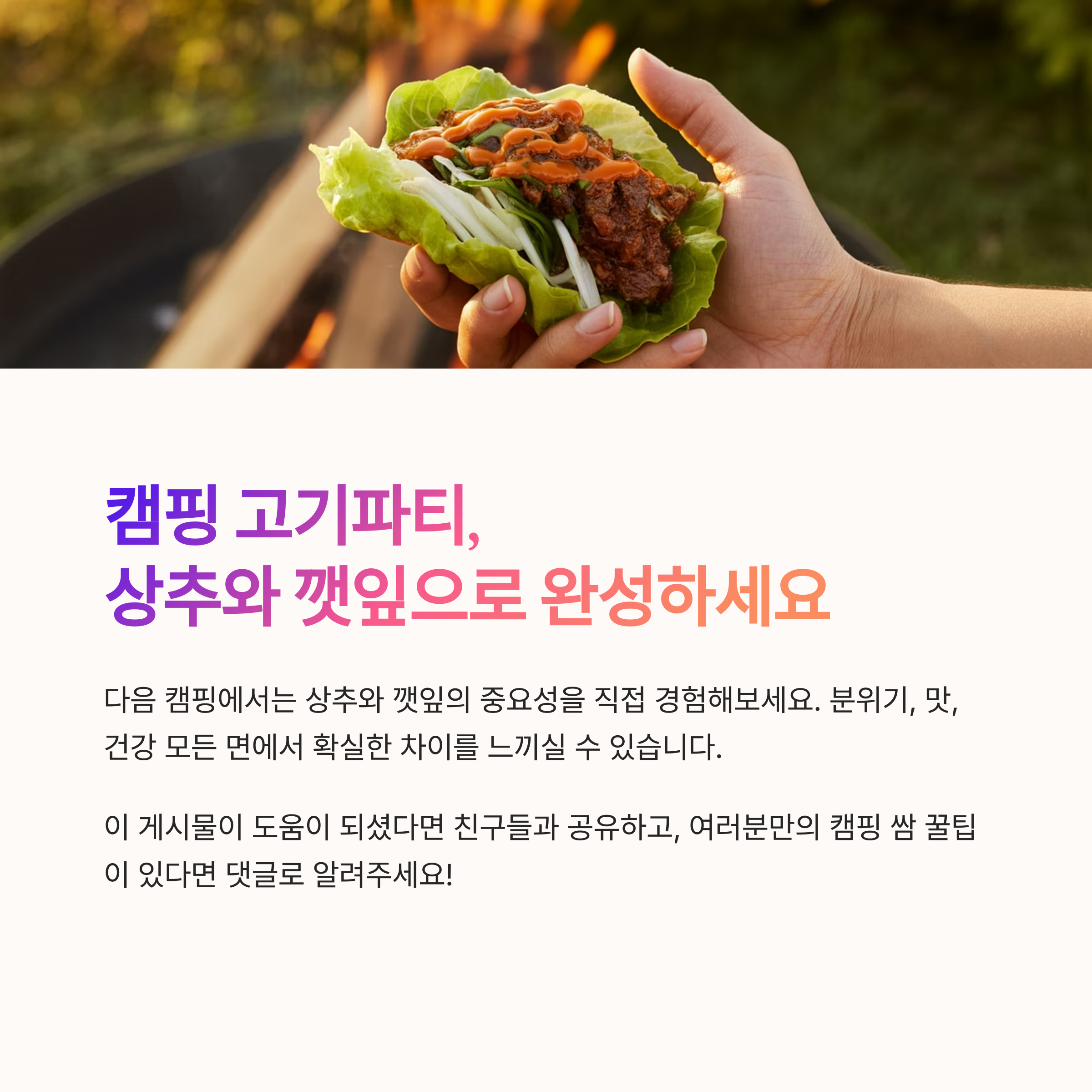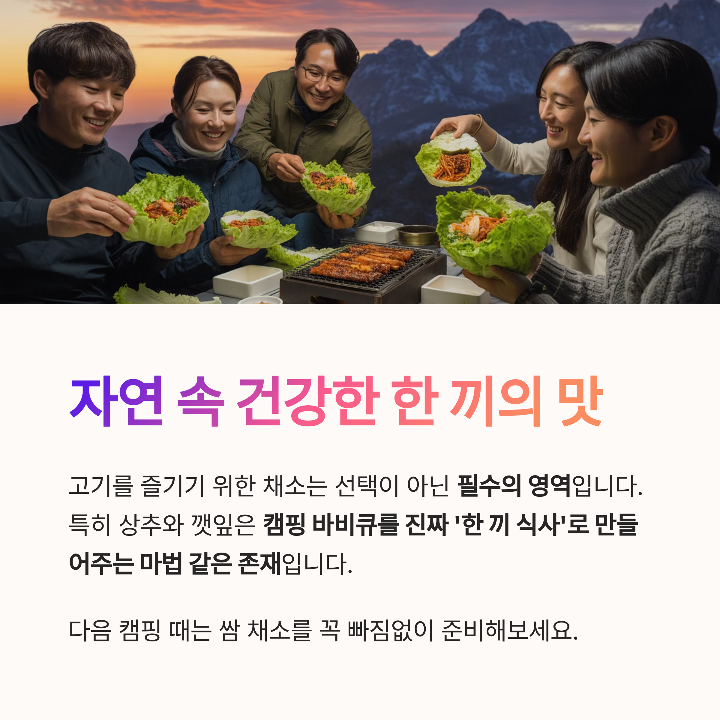 캠핑 초보에게 전하는 쌈의 조합 꿀팁