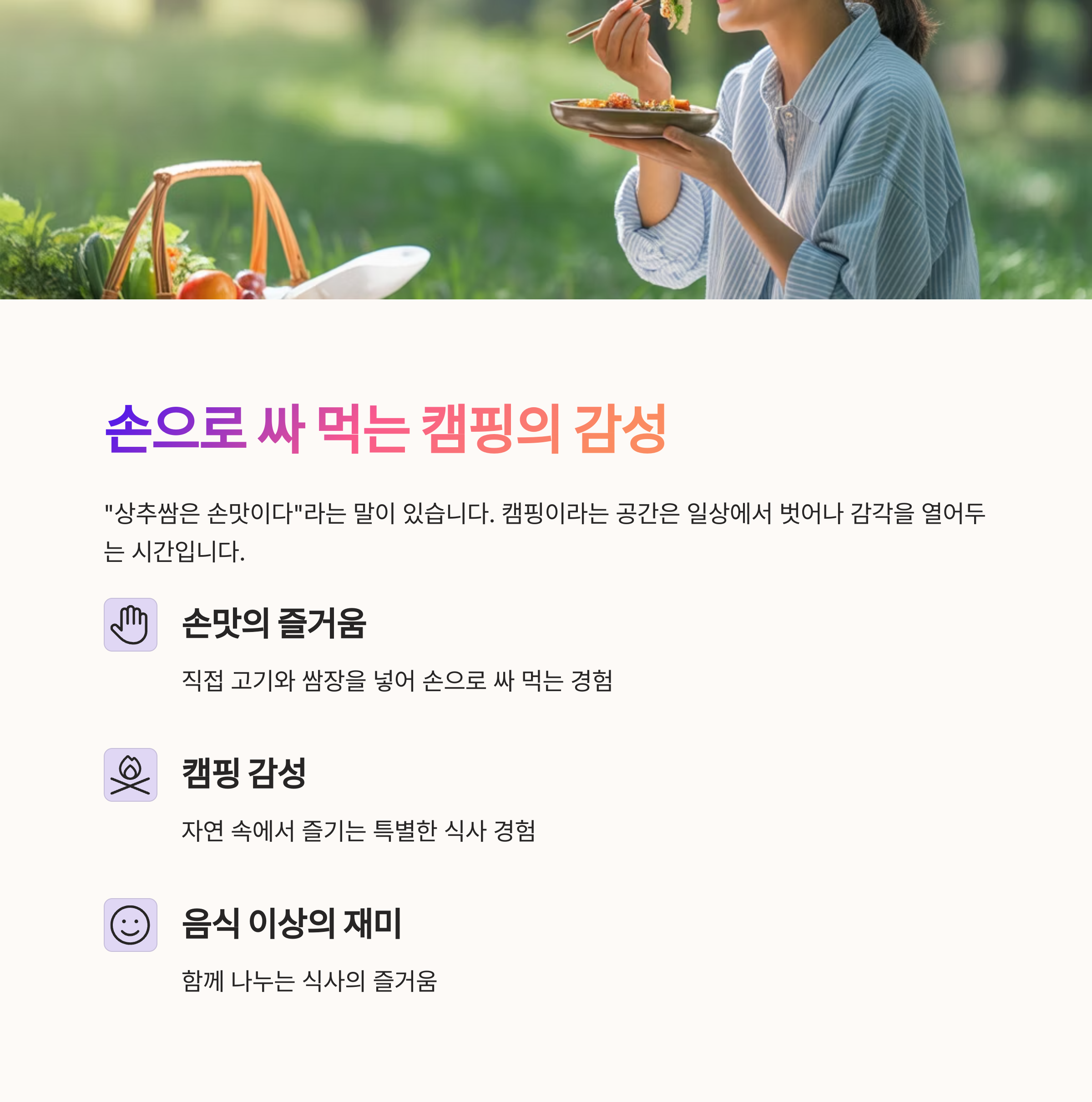 손으로 싸 먹는 즐거움, 캠핑의 감성까지 더하다