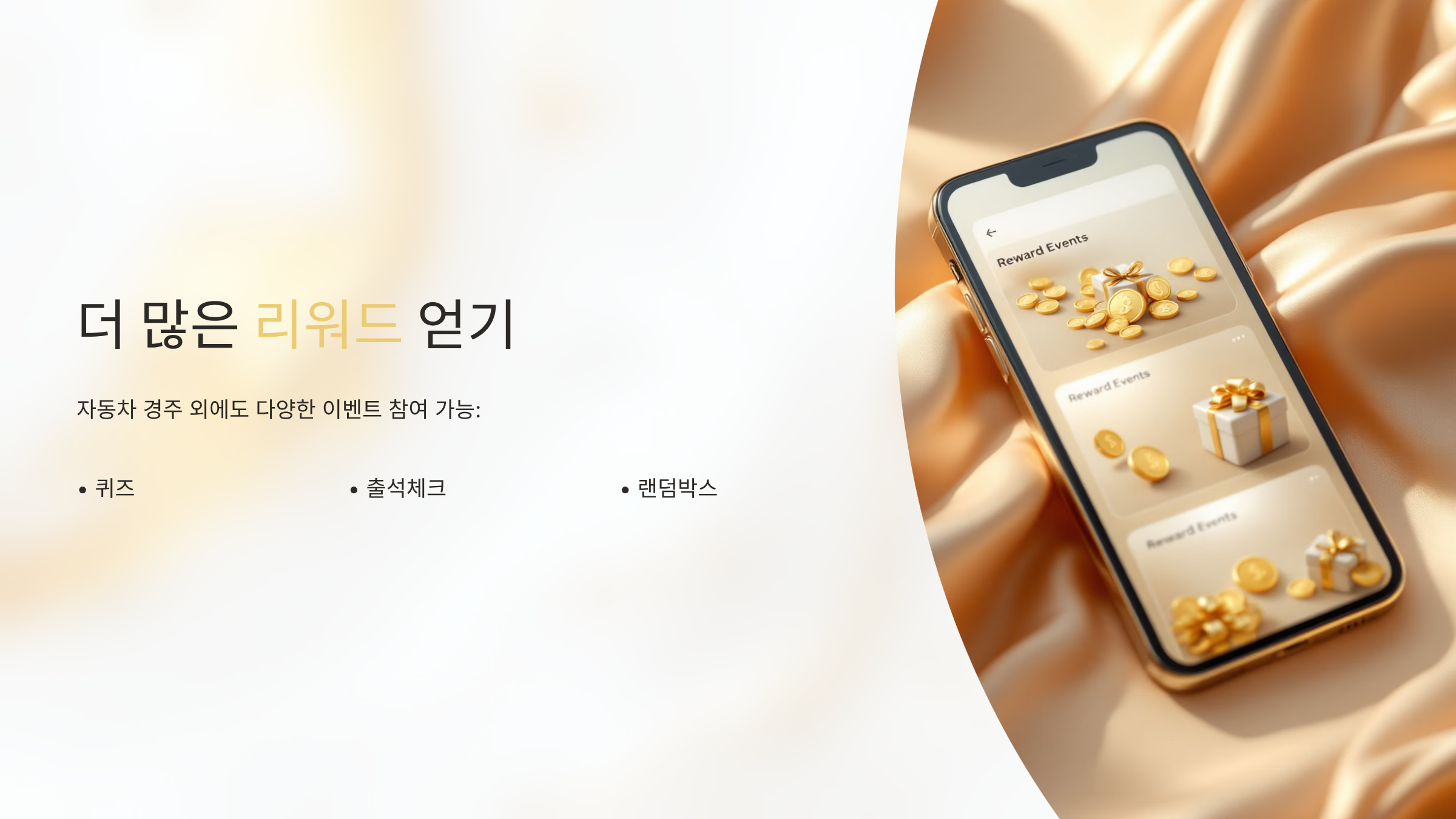 퀴즈, 출석체크, 랜덤박스 등 다양한 참여형 이벤트가 상시 열립니다.